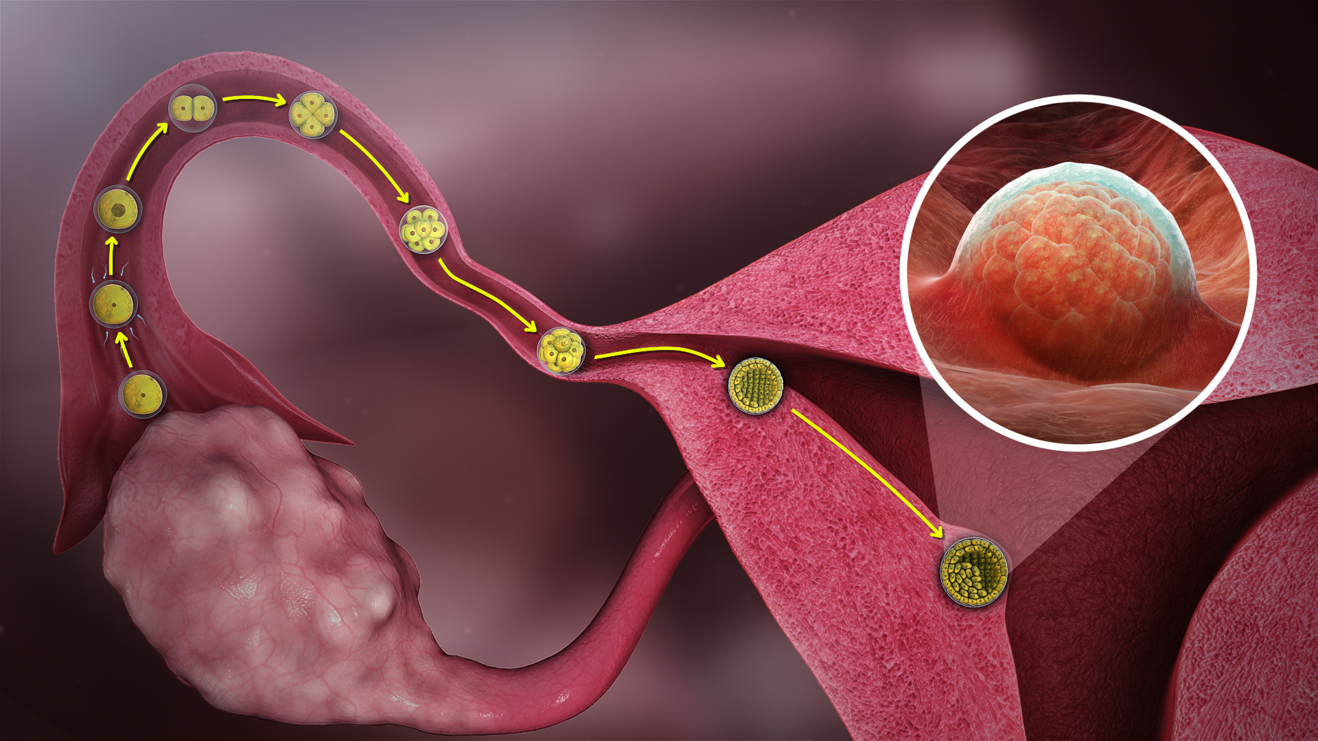 난자가 난소에서 방출된 후 나팔관의 섬모가 있는 끝 부분에 의해 포획되어 팽대부로 이동한다. 팽대부는 일반적으로 정자와 만나 수정이 일어나는 곳이다. 수정 후, 난자는 접합자라고 불리며 나팔관의 섬모와 근육 활동의 도움을 받아 자궁으로 이동한다.[10] 초기 배아는 나팔관 내에서 중요한 발달을 거치며, 약 5일 후 배아는 자궁강에 들어가고, 약 6일째에 자궁벽에 착상한다.4. 발생