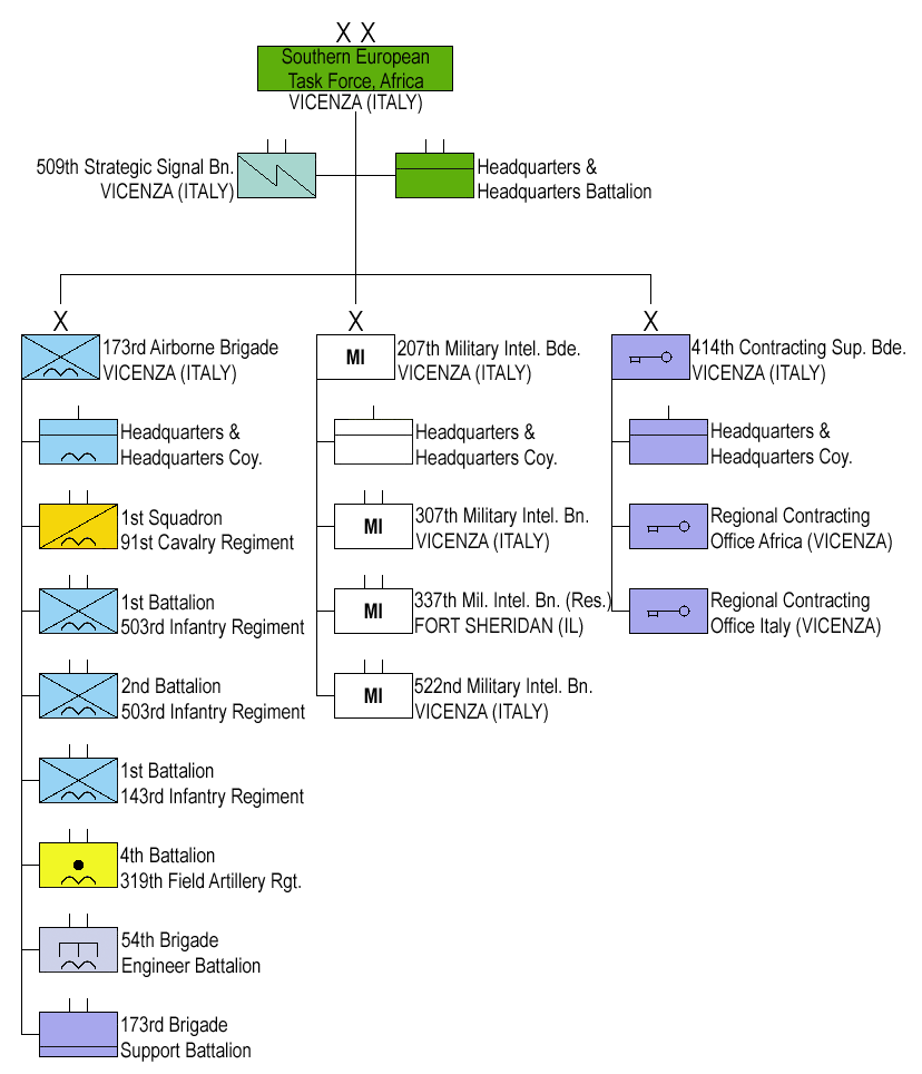 남유럽-아프리카 태스크포스(SETAF)는 시기에 따라 다양한 부대로 구성되어 변화해 왔다.