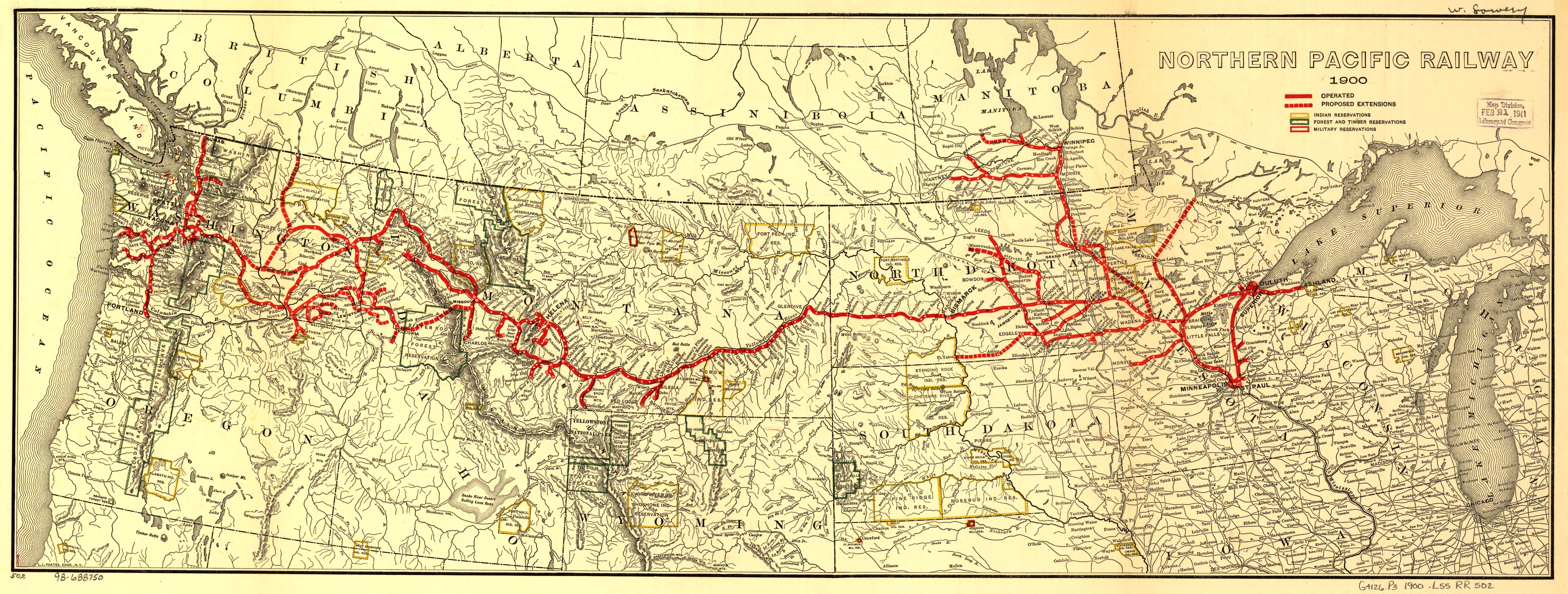 북태평양 철도는 연방 정부로부터 불하받은 토지를 활용하여 철도 시스템을 구축하고 정착 사업을 위한 자금을 마련했다.[39][8] 연방 정부는 홈스테드법(1862년)에 따라 철도 회사에 할당된 토지 외의 다른 구획 토지를 이민 정착자들에게 무상으로 제공하고 있었다.[8]