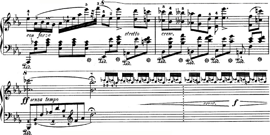 이 곡은 3부분 형식(A-B-A)으로, 첫 번째 부분은 ''알레그레토''로 표시되어 있다. 주요 주제는 반음계적이지만, 향수를 불러일으키는 분위기를 지닌다. 두 번째 대조적인 부분인 B단조의 ''아지타토''는 오른손의 멜로디와 대선율이 결합되고 왼손의 지속적인 8분 음표 아르페지오가 특징으로, 상당한 기교를 요구하는 매우 극적인 부분이다. 이 곡은 콜로라투라 장식음으로 가득하며, 작품 9, 2번과 유사한 작은 카덴차로 끝난다. 왼손의 넓은 화음과 오른손의 고음 옥타브에서 3잇단음표가 함께 연주된 후, B장조의 아르페지오로 마무리된다.[1]