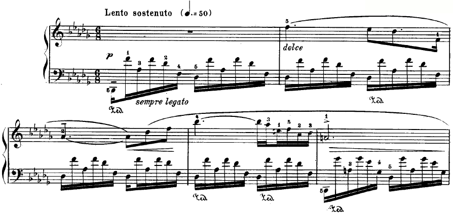 루트비히 판 베토벤이 1800년에서 1801년 사이에 작곡하고 헝가리 귀족 줄리에타 귀차르디에게 헌정된 피아노 소나타 14번은 "월광 소나타"라는 별칭으로 알려져 있으며, 3악장 구성과 독특한 악장 배열, 격정적인 감정 표현으로 낭만주의 음악의 선구적인 작품으로 평가받는다. - 올림다단조 작품 - 목신의 오후에의 전주곡