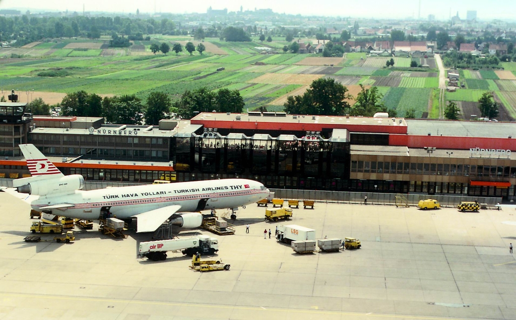 1950년 1월 2일, 퓌르트 하르트회에에 뉘른베르크-퓌르트 산업 공항이 개설되어 민간 항공이 다시 시작되었다. 이 공항은 고타 차량 제조가 제1차 세계 대전 시기에 설립한 비행기 제조소가 기원이며, 독일 재군비 이후 공군용 항공기 제조, 수리, 부품 저장을 담당했고, 패전 후에는 미국 공군이 사용했다.[13] 1955년, 현재 위치에 뉘른베르크 공항이 신설되었는데, 이는 독일에서 전후 최초로 건설된 공항이었다.[15]
