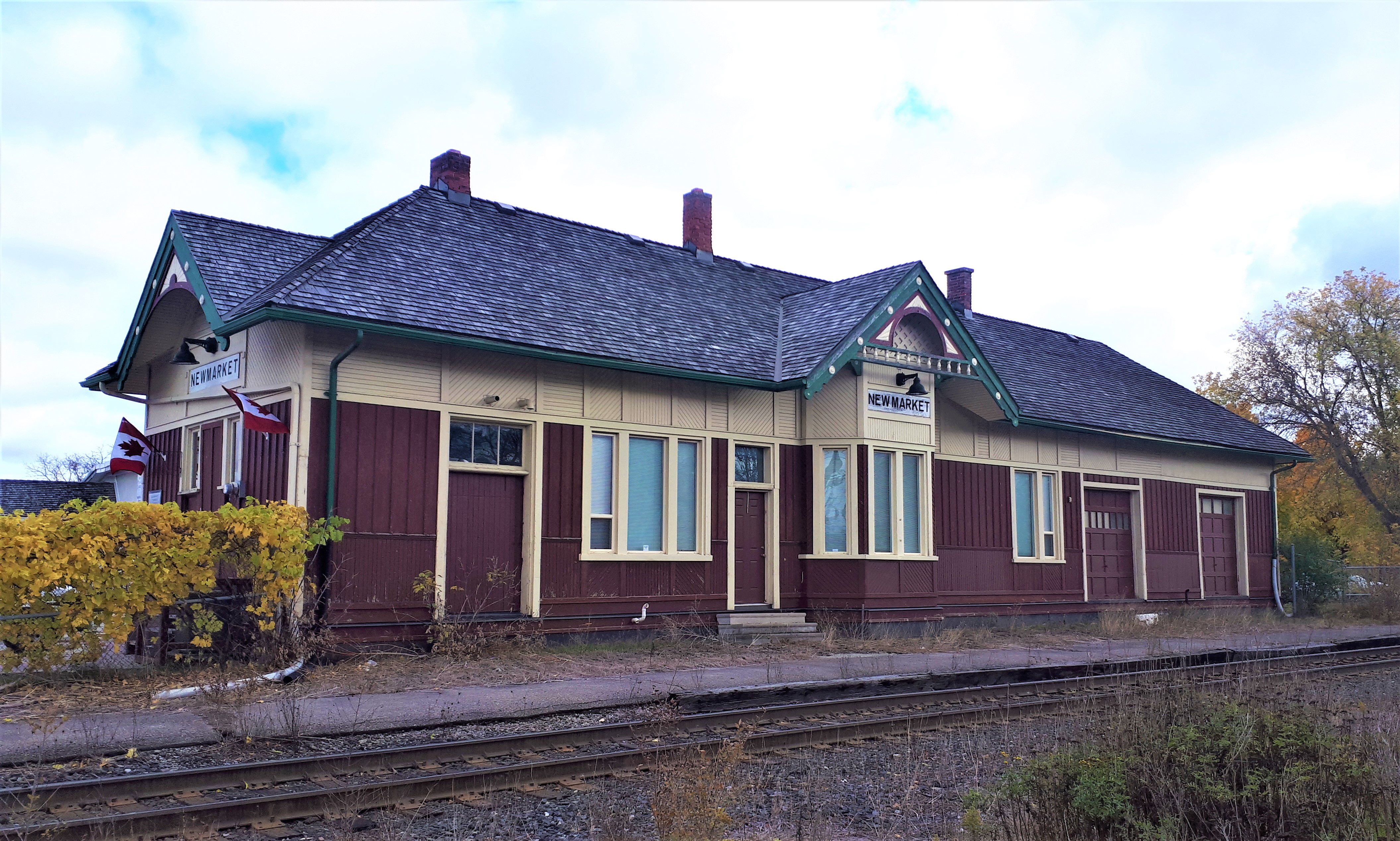 1900년 그랜드 트렁크 철도에 의해 데이비스 드라이브 남쪽에 뉴마켓 기차역이 건설되었다. 원래의 NRC 역은 이후 화물 창고로 용도가 변경되었다. 두 번째 역 건물은 카펜터 고딕 양식과 관련된 판재와 배튼 사이딩이 있는 1층 목조 골조 건물로, 서쪽 면에는 대기실이 양쪽에 있는 돌출된 베이 창이 있었으며, 원래 남쪽 방은 여성용, 북쪽 방은 남성용이었다.[1]
