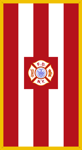 뉴욕시 소방국의 깃발은 5개의 자치구를 나타내는 5개의 빨간색과 흰색 줄무늬로 이루어져 있다. 깃발의 왼쪽 상단에는 도시의 문장이 중앙에 위치하고, 갈고리, 사다리, 소화전 및 "F.D.N.Y."라는 글자로 둘러싸인 성 플로리안 십자가가 새겨져 있다.소방국은 순직한 부서원들의 관에 덮이는 변형 깃발을 사용하는데, 이 깃발은 세로 방향으로 성 플로리안 십자가가 옆으로 뉘어져 있고 금색 술이 달려 있다.[23]