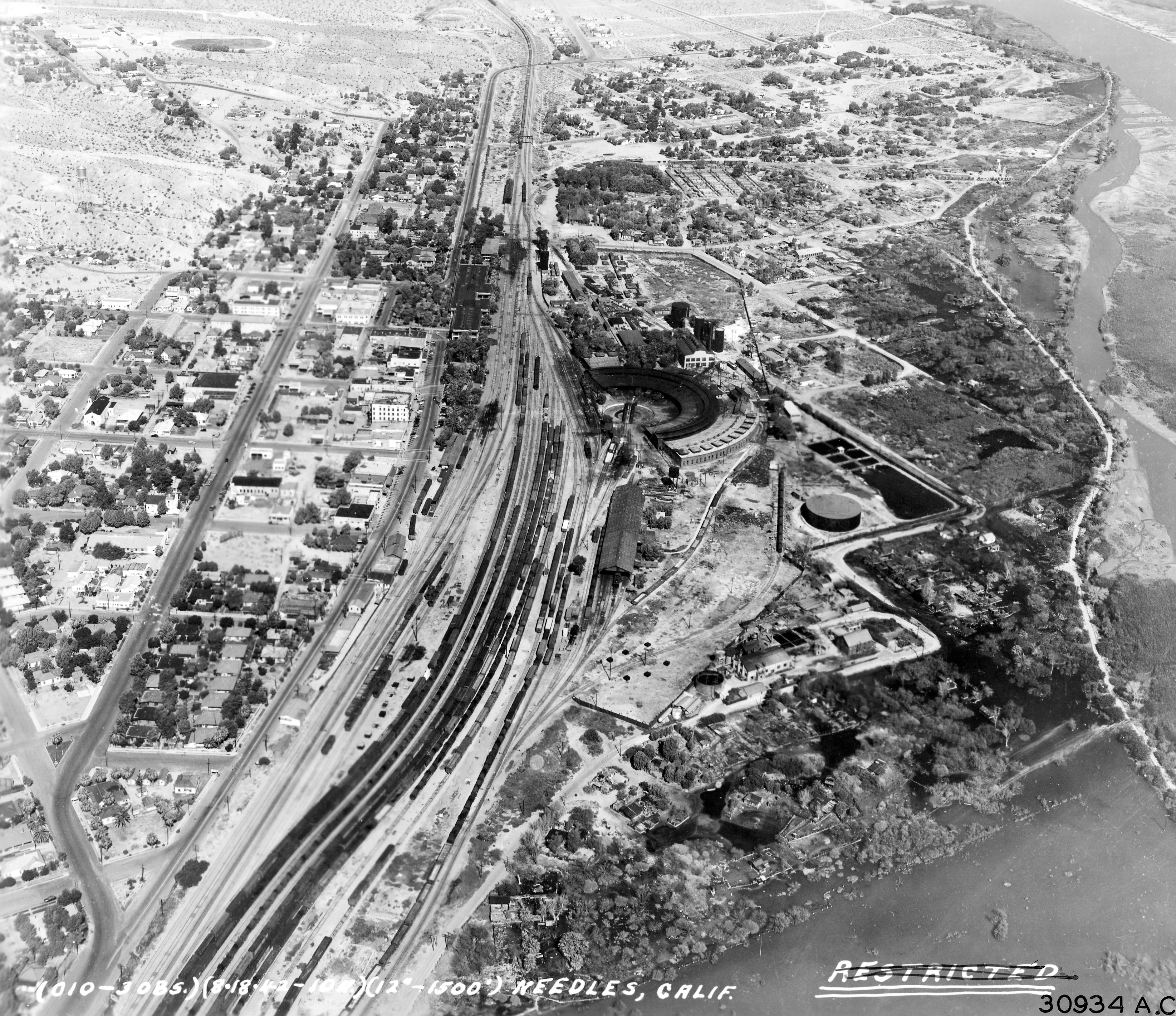 초기에 니들스는 철도 건설 인부를 위한 텐트 마을이었으나, 철도 회사가 호텔, 차량 차고, 상점, 턴테이블 등을 건설하면서 발전했다. 불과 한 달 만에 니들스에는 중국 세탁소, 신문 가판대, 식당, 여러 일반 상점 및 9~10개의 술집이 생겨났다. 니들스는 곧 유마 북쪽에서 콜로라도 강 최대의 항구 도시가 되었다.[7] 철도 회사와 프레드 하비 컴퍼니는 1908년에 우아한 신고전주의 건축 및 보자르 건축 양식의 엘 가르세스 호텔과 산타페 역을 건설했는데, 이는 프레드 하비 체인 전체에서 "최고의 보석"으로 여겨졌다. 이 랜드마크 건물은 국립 역사 유적지에 등재되어 있으며 현재 복원 중이다.