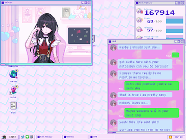 あめちゃん|아메쨩|Ame-chan일본어는 학교를 자퇴하고 집에 틀어박혀 플레이어인 주인공과 함께 사는 정신적으로 불안정한 어린 소녀이다.[5][3][36][12] 아메는 집세를 내고 준 사회적 관심 욕구를 충족시키기 위해 인터넷 스트리밍을 시작하기로 결심한다. 그녀는 가발, 화장, 귀여운 옷을 입고 스트리밍 시청자와 소통하며 超絶最かわてんしちゃん|초절정 귀여운 천사|Chōzetsu saikawa tenshi-chan일본어(초절정 귀여운 천사한국어), 줄여서 超てんちゃん|초텐쨩|Chōten-chan일본어이라는 온라인 페르소나를 사용한다. 애정 어린 애칭으로 ピ|P쨩|pi일본어라고 불리는 주인공은 그녀의 팔로워 수를 늘려가며 아메의 일상생활을 관리하는 역할을 맡는다.[13][9][14][15]