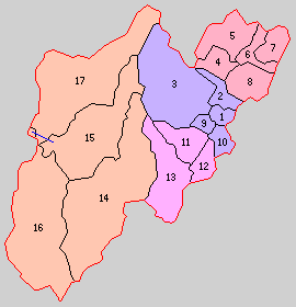 도치쿠보 마을 | 다카오카 마을 | 미노와다 마을 | 이시나타 마을 | 바바 마을 | 아제후지 마을 | 히로노 마을 | 아사다테 마을 | 주오 마을 | 다키노 마을 |