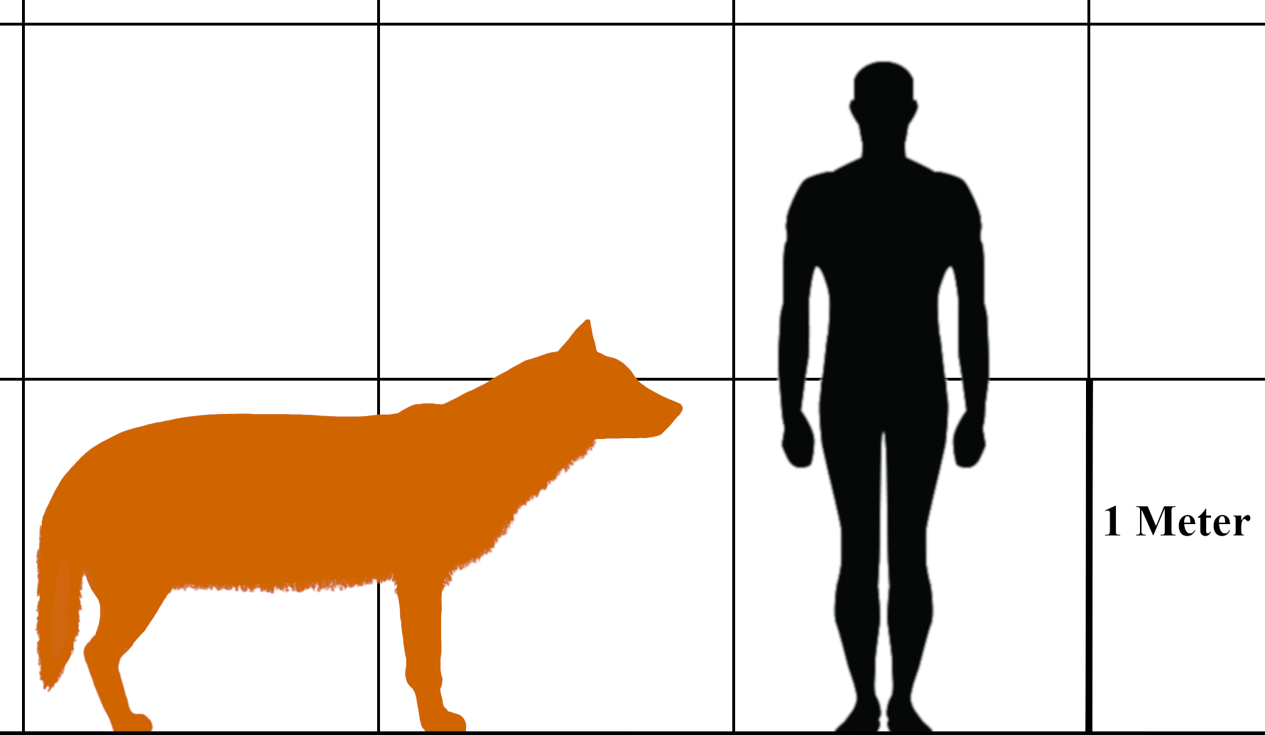 다이어울프의 신장은 대략 1.5m에 체중은 50kg ~ 79kg였다.[18][19] 일부 개체군에서는 수컷의 송곳니가 암컷보다 상당히 커서 번식 경쟁에 사용되었을 가능성이 있지만, 다른 개체군에서는 송곳니의 성적 이형이 거의 나타나지 않아 경쟁이 드물었음을 시사한다.[20]