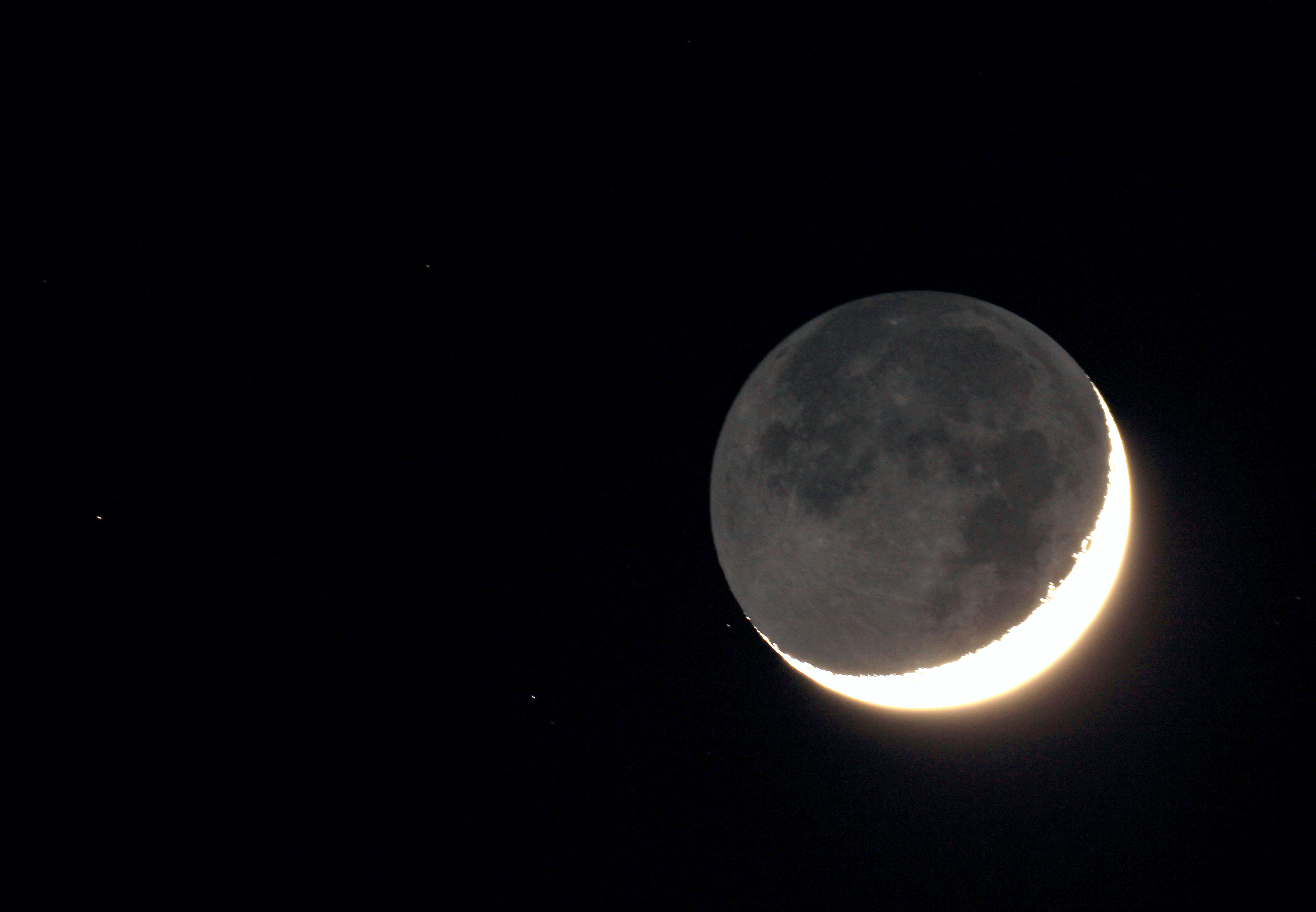 초승달 (Waxing Crescent) | 삭 이후, 조금씩 햇빛을 받는 부분이 늘어나는 시기 |