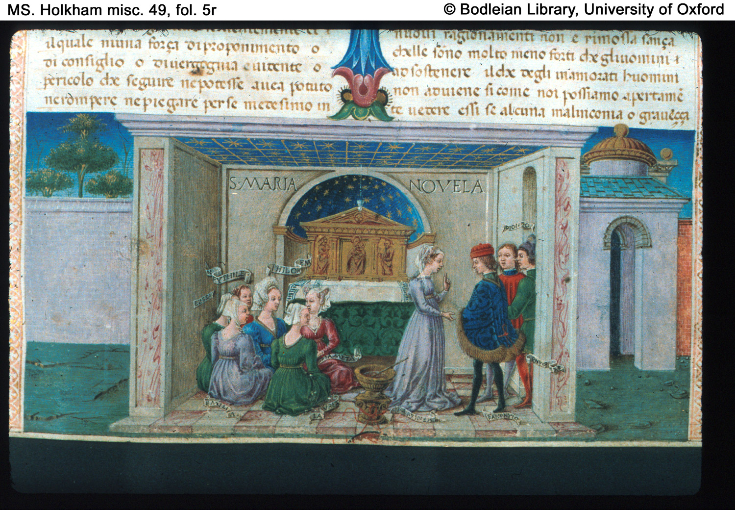《데카메론》은 14세기 이탈리아의 작가 조반니 보카치오가 쓴 액자 소설이다. 흑사병을 피해 피렌체를 떠난 열 명의 젊은 남녀가 열흘 동안 각자 하루에 한 편씩 이야기를 나누며 100개의 이야기를 엮은 작품이다. 작품은 당시 사회의 다양한 계층과 인물들의 모습을 통해 인간의 본성과 욕망을 풍자하며, 르네상스 시대의 문학에 큰 영향을 미쳤다. 《데카메론》은 셰익스피어, 몰리에르 등 수많은 작가들에게 영감을 주었으며, 다양한 예술 작품으로 재해석되었다.