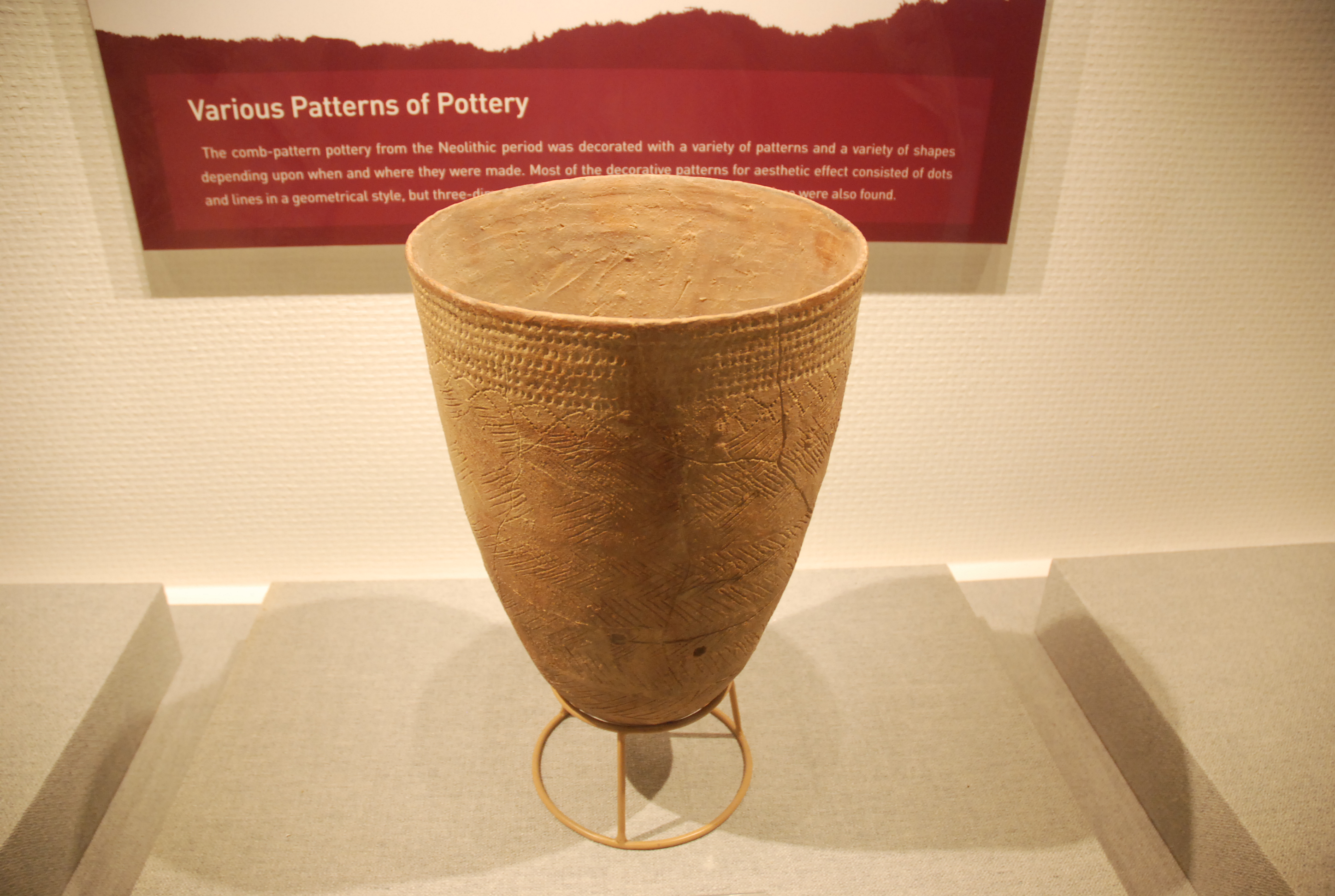 빗살무늬토기는 신석기 시대에 한반도와 유라시아 북부 지역에서 사용된 토기로, 수작업으로 제작되어 노천 가마에서 구워졌으며, 핀란드, 발트해, 러시아 지역의 문화와 관련이 있다. - 도예 - 토기