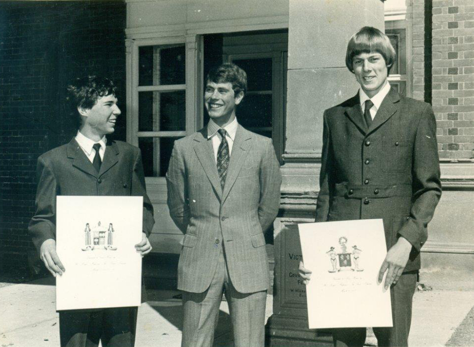 1983년 학교를 비공식 방문하여 그린과 로스 데이 하우스를 설립한 에드워드 왕자. 당시 학교 정복인 노퍽 자켓을 착용하고 있는 캡틴들