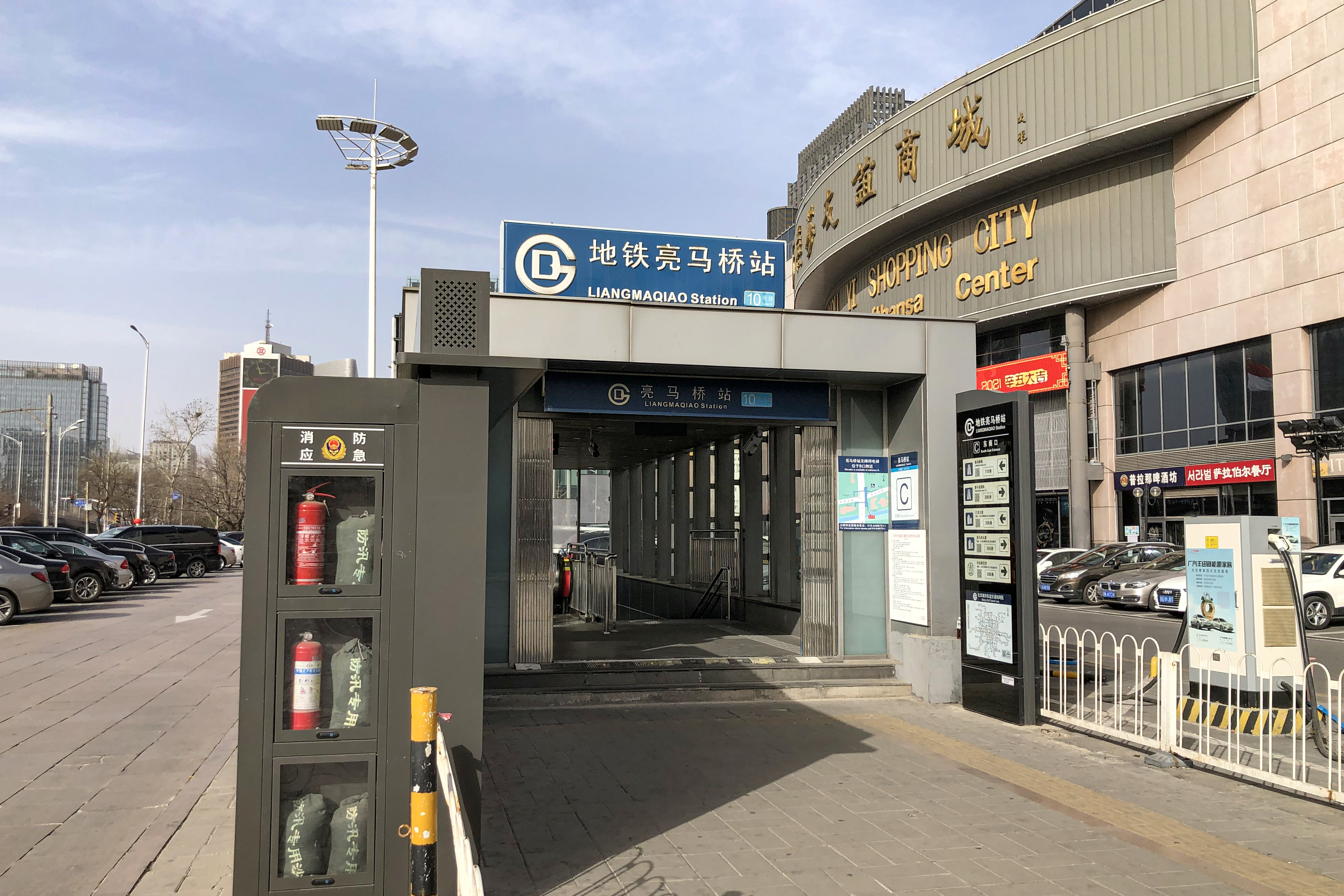 량마차오역은 중화인민공화국 베이징 지하철 10호선의 역으로, 동3환북로, 신위안 남로, 량마차오로 교차점에 위치한다. 섬식 승강장 구조의 지하철역이며, 4개의 출구(A, B, C, D)가 있다. A 출구는 핑안 국제 금융 센터 지하 상업 지역과 연결된다.