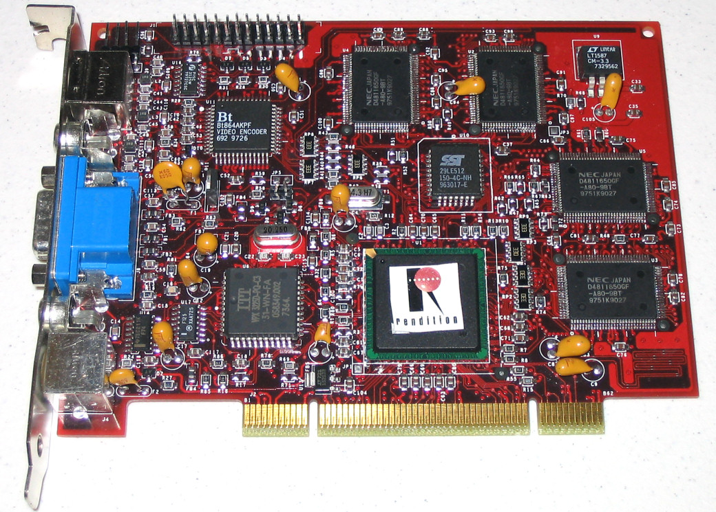1996년 렌디션이 출시한 V1000 칩셋은 RISC 기반 아키텍처로 유명했다. V1000은 PC 그래픽 카드 중 처음으로 3차원 그래픽 렌더링을 위해 프로그래밍 가능한 코어를 활용했다. 매트록스 밀레니엄, ATI 레이지/3D, S3 Virge3D 등 경쟁 제품보다 빨랐고 기능 면에서도 더 발전했다. 3DFX의 부두 그래픽스만이 더 빨랐지만, 부두 그래픽스와 달리 V1000은 2D/VGA 기능을 포함해 3D 게이밍을 위한 최초의 싱글 보드 솔루션이었다.