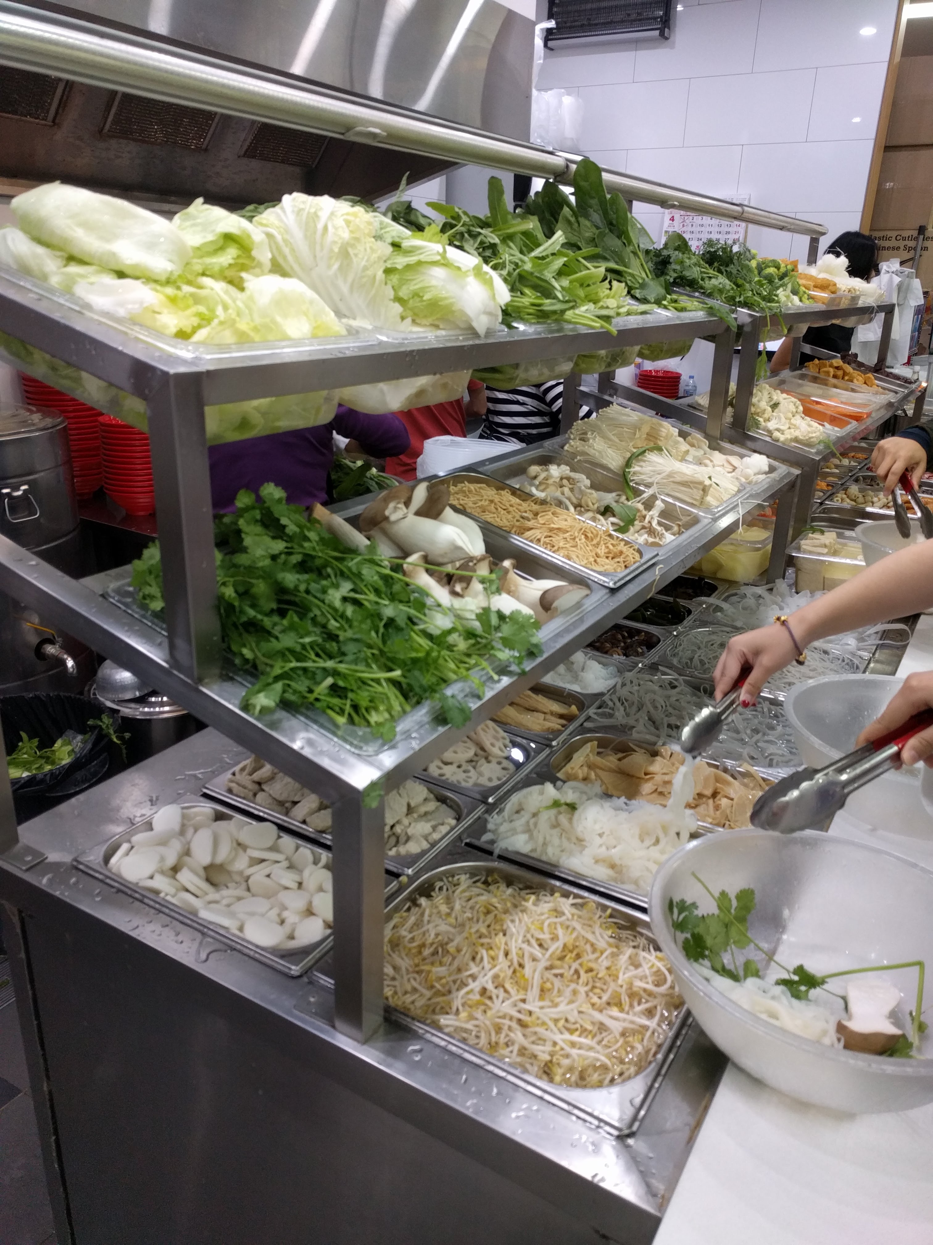 마라탕 식당들은 탕에 넣을 재료를 뷔페 형식으로 진열해 놓고 있는 경우가 대부분이다. 한국의 마라탕 식당들도 대개 이러한 중국 식당의 방식을 사용한다. 손님이 양푼에 먹고 싶은 재료를 담아서 카운터에 내면 무게에 따라 가격을 매긴 후, 주방에서 재료를 넣고 조리하여 탕을 완성해서 가져다 준다.