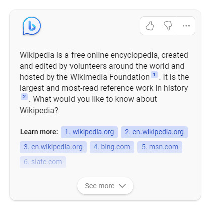 - Ecosia는 빙을 사용하여 2017년부터 검색 결과를 제공한다.[182]