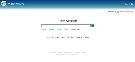 '''Windows Live Search'''는 2006년 3월 8일에 공개 베타 버전이 처음 공개되었고, 2006년 9월 11일에 정식 버전이 출시되면서 MSN Search를 대체했다. 새로운 검색 엔진은 웹, 뉴스, 이미지, 음악, 데스크톱, 지역, 마이크로소프트 엔카르타(Microsoft Encarta)를 포함하는 검색 탭을 사용했다.