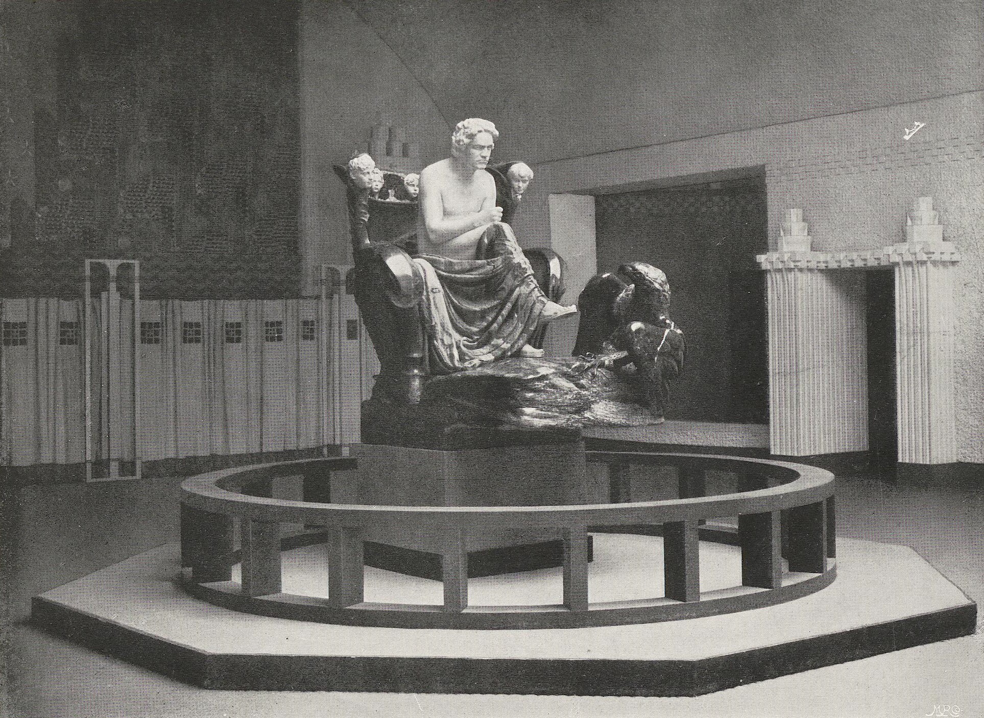 1902년 빈 분리파의 제14회 전시회는 베토벤을 주제로 열렸으며, 클링거의 "베토벤" 조각상이 중심 작품으로 빈에 전시되었다. 빈 분리파는 이 조각품 구매를 희망했으나 성사되지 못했다. 분리파 소속 예술가 알프레드 롤러는 전시 공간을 위한 작품을 제작했고, 롤러와 건축가 요제프 호프만이 전체 설치를 감독했다. 클링거의 "베토벤"은 중앙 홀에 배치되었고, 그 뒤 벽에는 롤러의 벽화 "밤의 강림"이 걸렸다. 인접한 방에서는 구스타프 클림트의 중요한 작품 "베토벤 프리즈"가 전시되었다. 평소 내성적이던 구스타프 말러까지 나서 베토벤 교향곡 9번의 트럼펫 파트를 편곡하고 개막 연주를 위해 음악가들을 설득하고 연습시켰다. 특정 건축 공간 안에서 조각, 회화, 음악이 함께 제시된 이 전시회는 총체적 예술 작품의 맥락에서 기획되었으며, 현대의 설치 미술과 비견될 만한 시도였다. 전시회는 언론의 광범위한 주목을 받았지만 동시에 스캔들을 일으켰다. 대부분의 비판은 클림트와 그의 벽화에 집중되었으나, 클링거의 조각품 역시 키치하다는 비난이나 베토벤을 누드로 표현한 것에 대한 불쾌감을 표하는 비판을 받았다. 전시회를 방문한 오귀스트 로댕은 클링거의 조각품에 대해 별다른 언급 없이 지나쳤다고 전해지며, 나중에는 그 작품이 조각과는 무관하다고 말했다고 한다.[7][11]