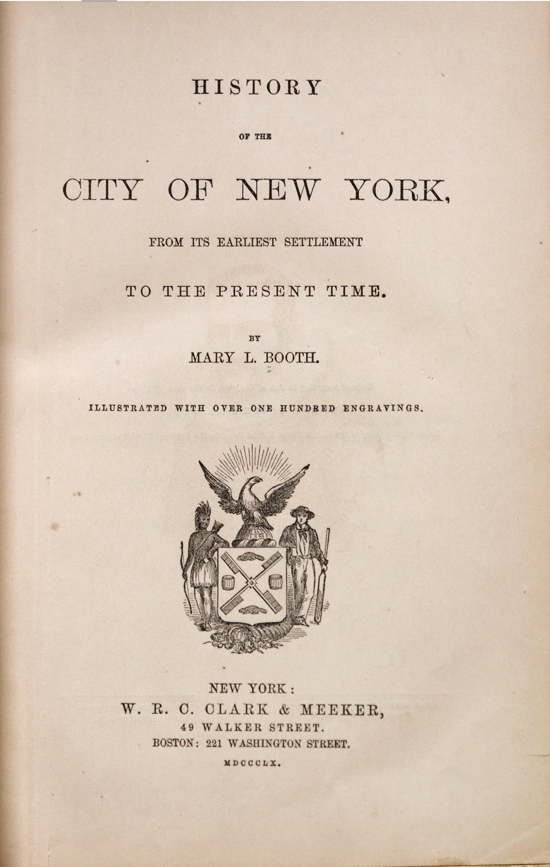 메리 루이스 부스의 ''뉴욕시의 역사'' (History of the City of New York, 1859)