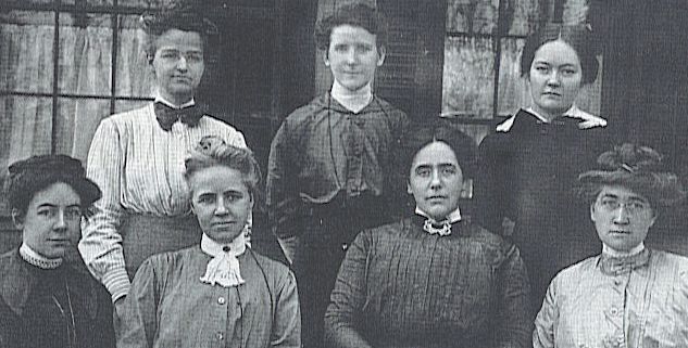 창립자 메리 조세핀 로저스(앞줄 오른쪽에서 두 번째)와 초대 '테레지안'. 앞줄: 메리 루이즈 홀린, 안나 마리아 토울, 사라 설리반. 뒷줄: 메리 어거스틴 드와이어, 노라 셰이, 마가렛 셰이, 1913년 메리놀에서.