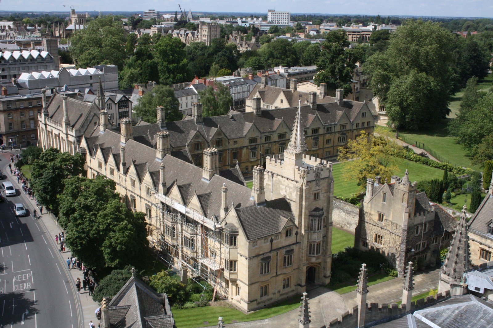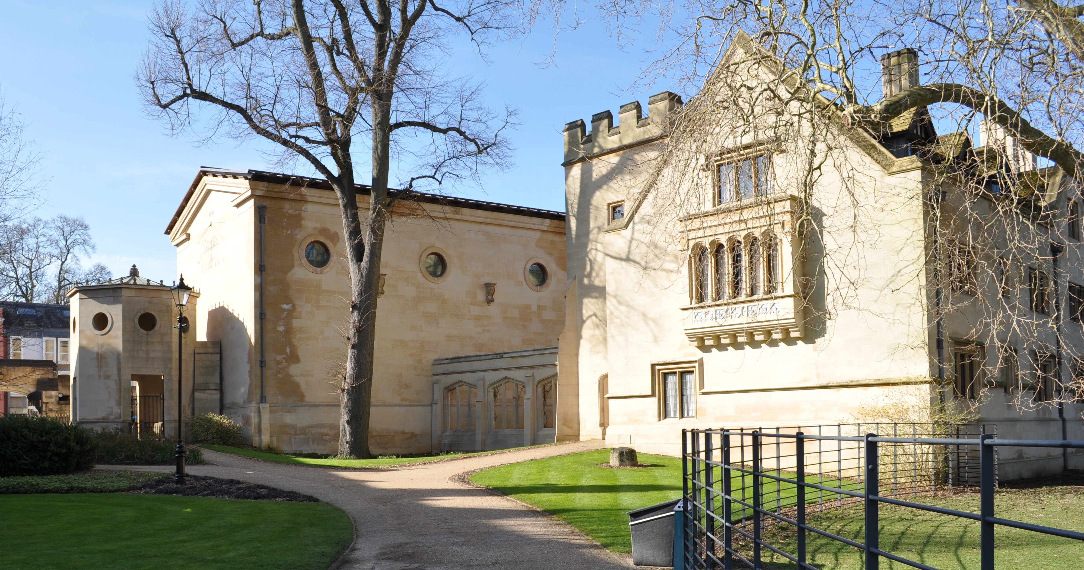 결국 신관을 새로운 사각형에 통합하는 계획은 포기되었고, 1824년 토마스 해리슨이 설계한 두 개의 귀퉁이 부분을 추가하여 건물의 양 끝을 완성했다.[43] 오늘날 신관은 회랑과는 별도로 서 있으며, 한쪽에는 네 개의 크로케 잔디밭을, 다른 쪽에는 그로브 사슴공원을 내려다보고 있다. 신관은 학부생과 연구원들의 숙소로 사용되고 있으며, 에드워드 기번(Edward Gibbon)과 C. S. 루이스(C. S. Lewis)가 역사적으로 이곳에 머물렀다. 와인 저장고도 있다.[44]