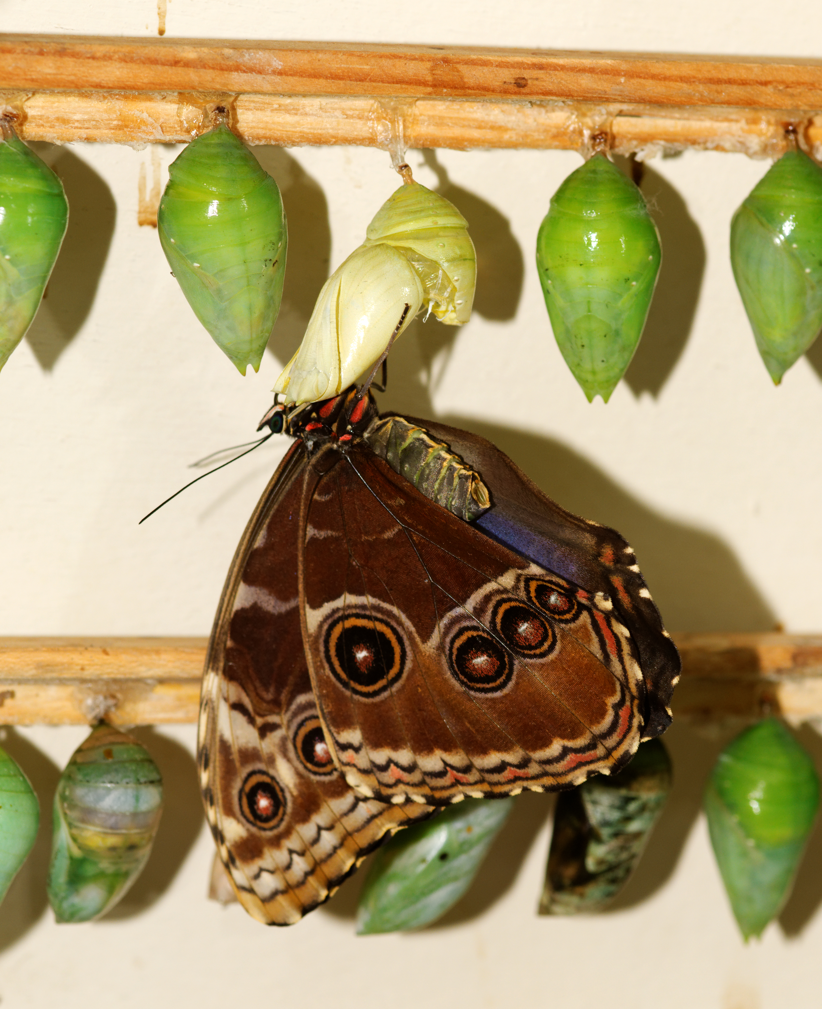 모르포나비의 전체 수명 주기는 알에서 죽음에 이르기까지 약 115일이다.