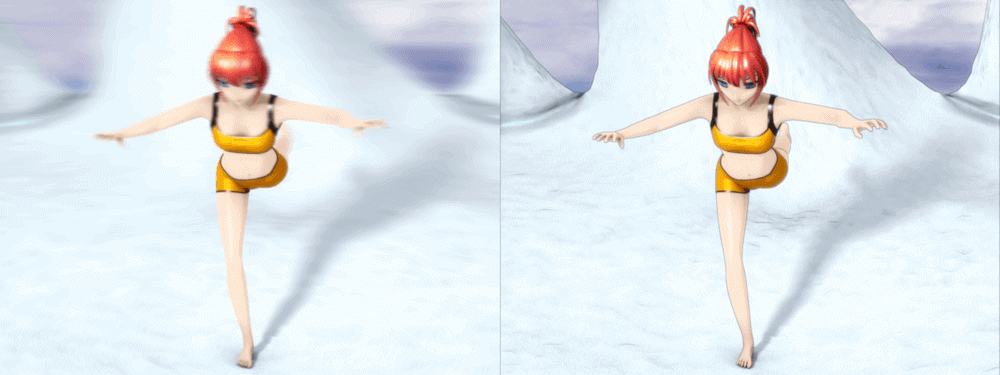 - 객체별 모션 블러: 더 "선택적"인 방식으로, 셰이더를 사용하여 속도 버퍼를 생성하거나 지오메트리 압출을 수행하여 모션 블러 효과를 적용할 부분과 강도를 결정한다.