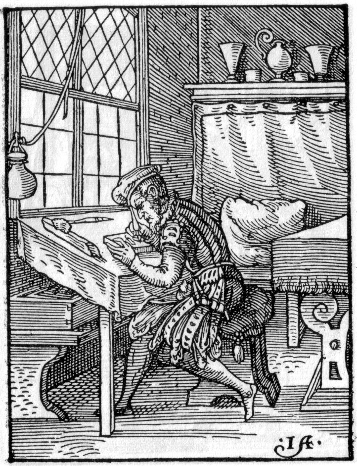 요스트 아만(Jost Amman)의 1568년 목판화 ''일하는 나무판 조각가''