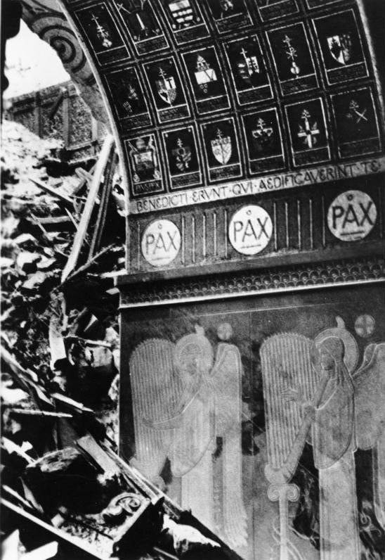 폴란드 군인들이 파괴된 몬테카시노 수도원 내부에 있는 모습