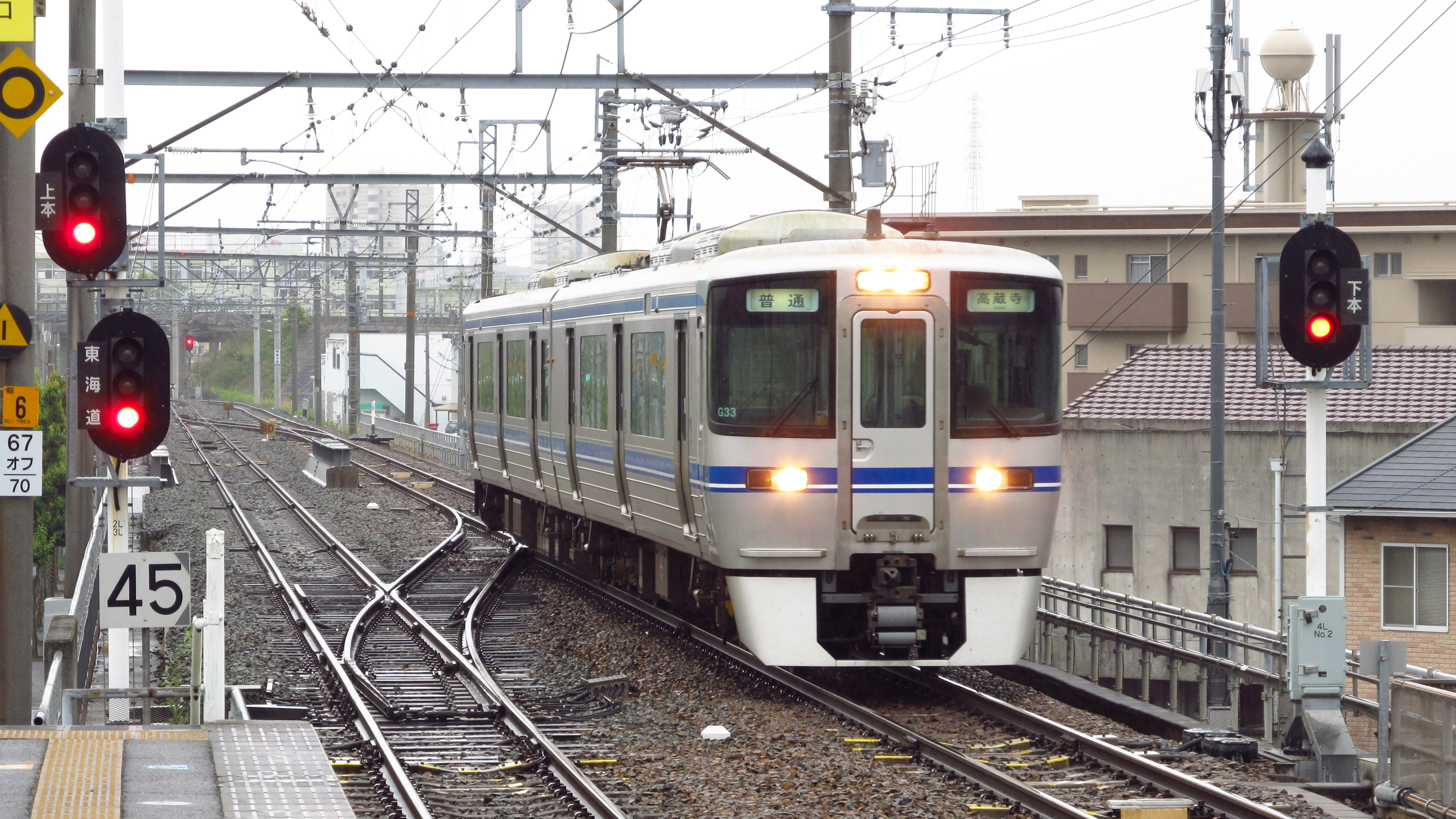 2004년에 오카자키역 구내 개량으로 도카이도 본선과 선로 공용이 해소된 후에는 당역부터 오카자키 역까지 단선 병렬로 되어 있다.(전 열차가 당역에서 오카자키 방향으로 왼쪽의 선로에 들어간다. 한편, 오른쪽으로 향하여 본선의 아래를 뚫고 들어가는 선로는 신제 차의 반입 때만 사용된다).[2]