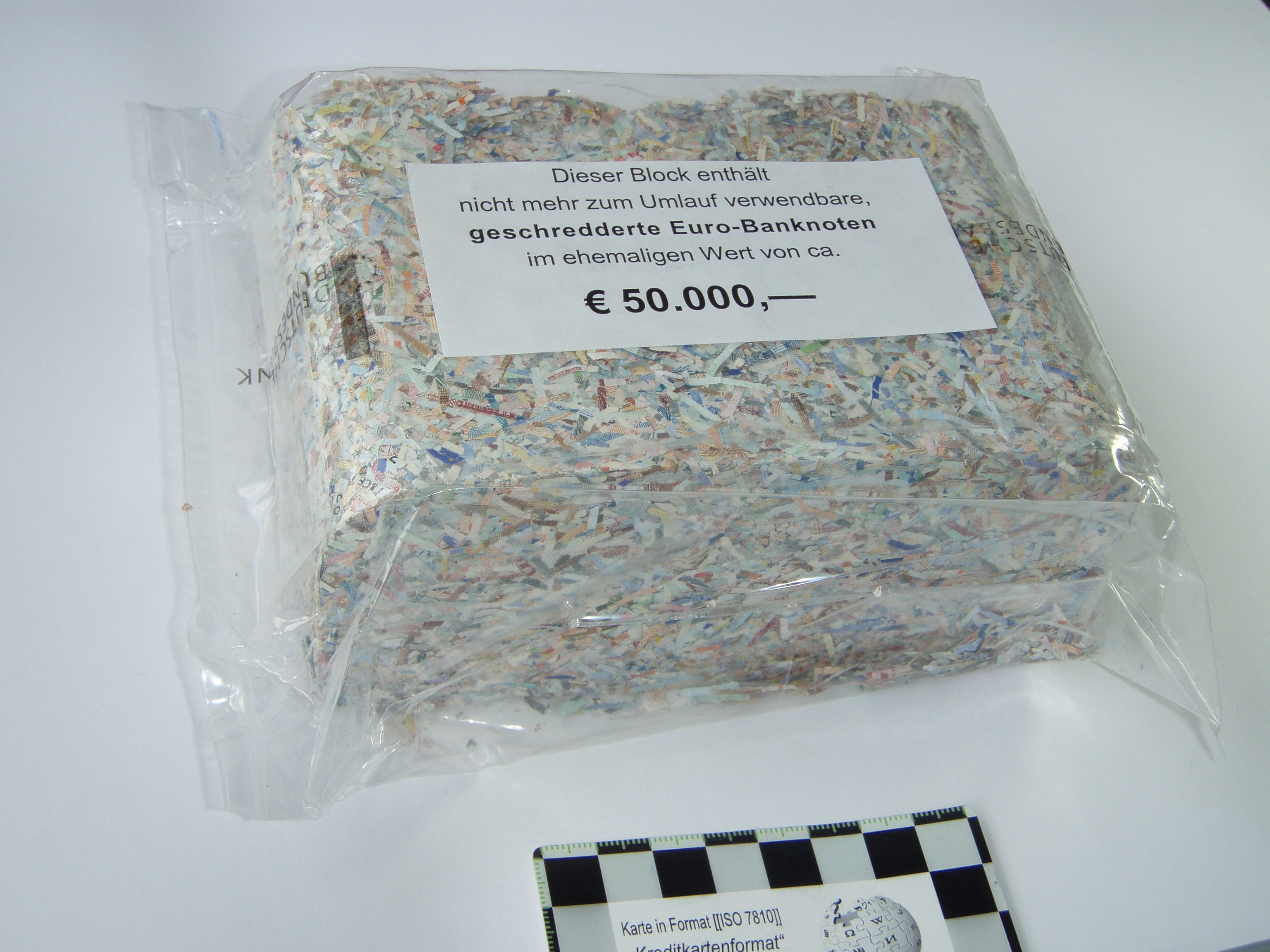 - 레벨 P-3: 입자 크기 ≤ 320 mm2 또는 너비 ≤ 2 mm의 길이 제한 없는 스트립 형태. 높은 보안이 요구되는 기밀 문서 및 개인 정보, 주소 데이터가 포함된 구매 주문서, 주문 확인서, 배송 메모 등에 사용된다.