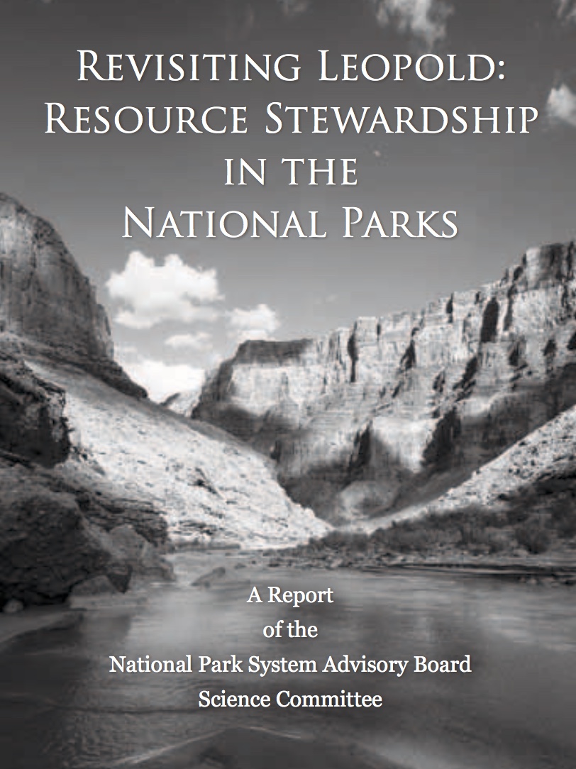1963년 미국 내무장관 스튜어트 우달이 임명한 5명의 야생동물 관리 자문위원회가 "국립공원 야생동물 관리"라는 보고서를 작성했다.[19] 이 보고서는 위원장이자 주요 저자인 A. 스타커 레오폴드의 이름을 따서 레오폴드 보고서로 불리게 되었다.레오폴드 보고서는 14페이지에 불과했지만, 2012년 재검토될 때까지 공원 정책을 이끌었던 생태계 관리 권고안을 제시했다. 이 보고서는 통합 원칙 하에 공원 방문객과 생태계를 관리하기 위한 최초의 구체적인 계획이었다.[20]