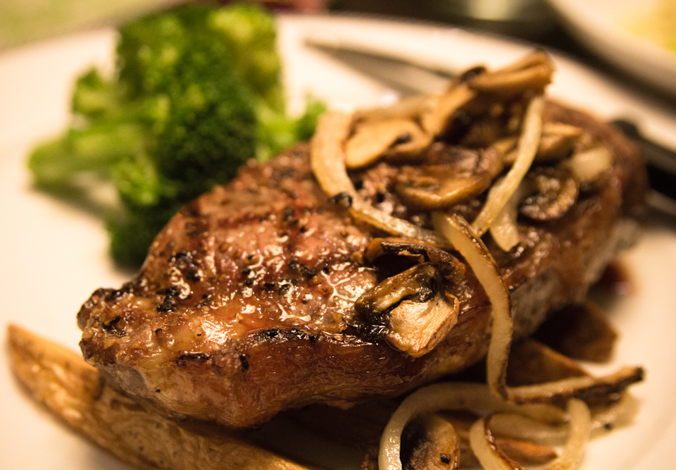 고기는 양키 포트 로스트와 뉴잉글랜드 보일드 디너와 같은 요리에서 삶거나 브레이징하는 방식으로 조리된다. 칠면조 고기는 수프의 주요 재료이며, 필그림 샌드위치와 같은 여러 샌드위치에서도 인기가 있다. 스테이크 밤은 뜨겁게 구운 쇠고기를 가늘게 다져 롤에 살라미와 치즈를 함께 넣어 만든다.[102] 베이컨은 종종 메이플로 숙성되며, 베이컨이나 돼지기름 기름은 옥수수 차우더의 재료로 사용된다.[103]
