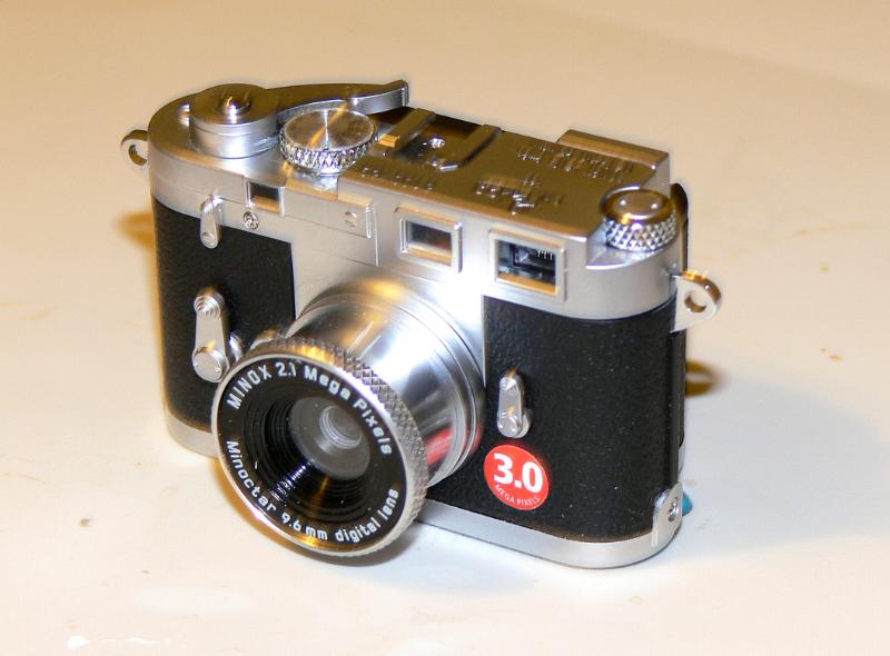 - '''미녹스 DCC 라이카 M3''' (400만 화소 버전, 2005년 3월 15일 출시) - 라이카 M3를 축소한 형태. 앞에서 봤을 때 오른쪽 아래에 있는 둥근 빨간색 씰의 숫자가 4.0. 내장 32MB 플래시 메모리.[1]