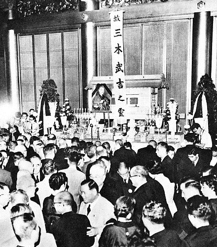 도조 히데키 내각의 기업 재건 법안에 대한 당 정책을 결정하기 위해 나카노 세이고는 동맹통치회의 고위 간부들을 가리키며 "권력의 중심에 아첨꾼들만 모여 있군. 이것은 결국 우리나라를 파멸로 이끌 것이다."라고 말했다. 주류 동맹통치회 의원들이 나카노를 야유하자, 미키는 갑자기 일어나 "시끄러워, 아첨꾼들아!"라고 외쳤고, 야유하던 사람들은 즉시 침묵했다.[10]