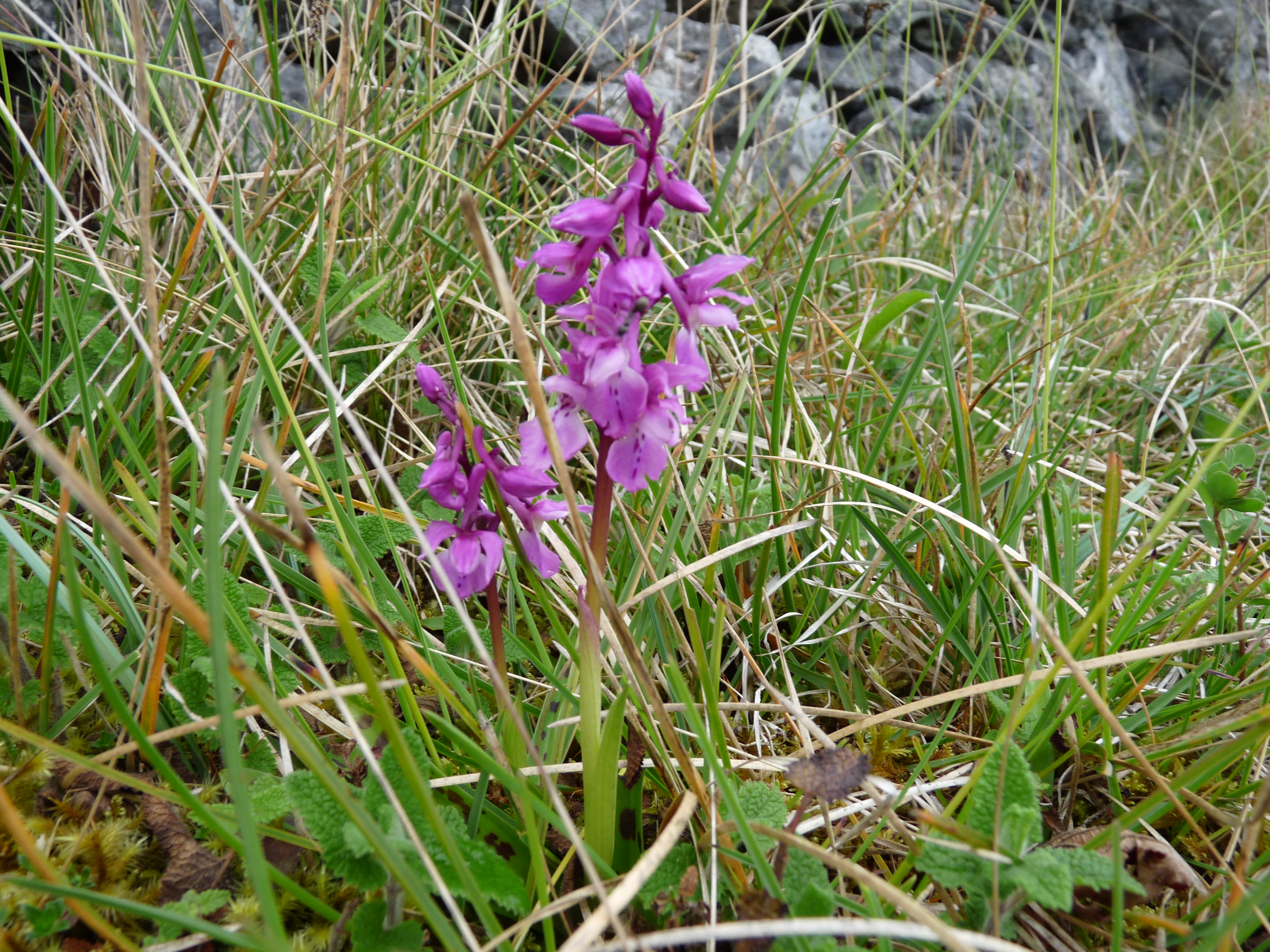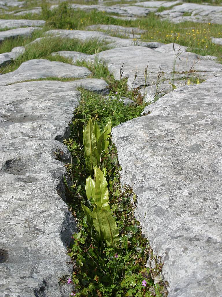 Failte Ireland(아일랜드 관광청)에서 이 지역의 상징으로 사용되는 밝은 파란색 꽃을 가진 고산 식물인 봄 제니안을 비롯하여 아일랜드 난초 (''Neotinea maculata'')와 블러디 크레인스빌(''Geranium sanguineum'')도 흔하게 볼 수 있다.[15] 석회암 그리케스에서 또 다른 두드러진 존재는 지중해 ''Adiantum capillus-veneris''와 같은 약 24종의 고사리이다.