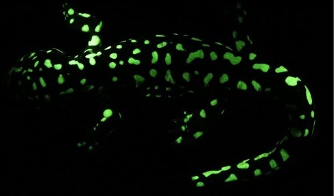 범무늬도롱뇽은 생체 형광을 띠는 것으로 알려져 있다.