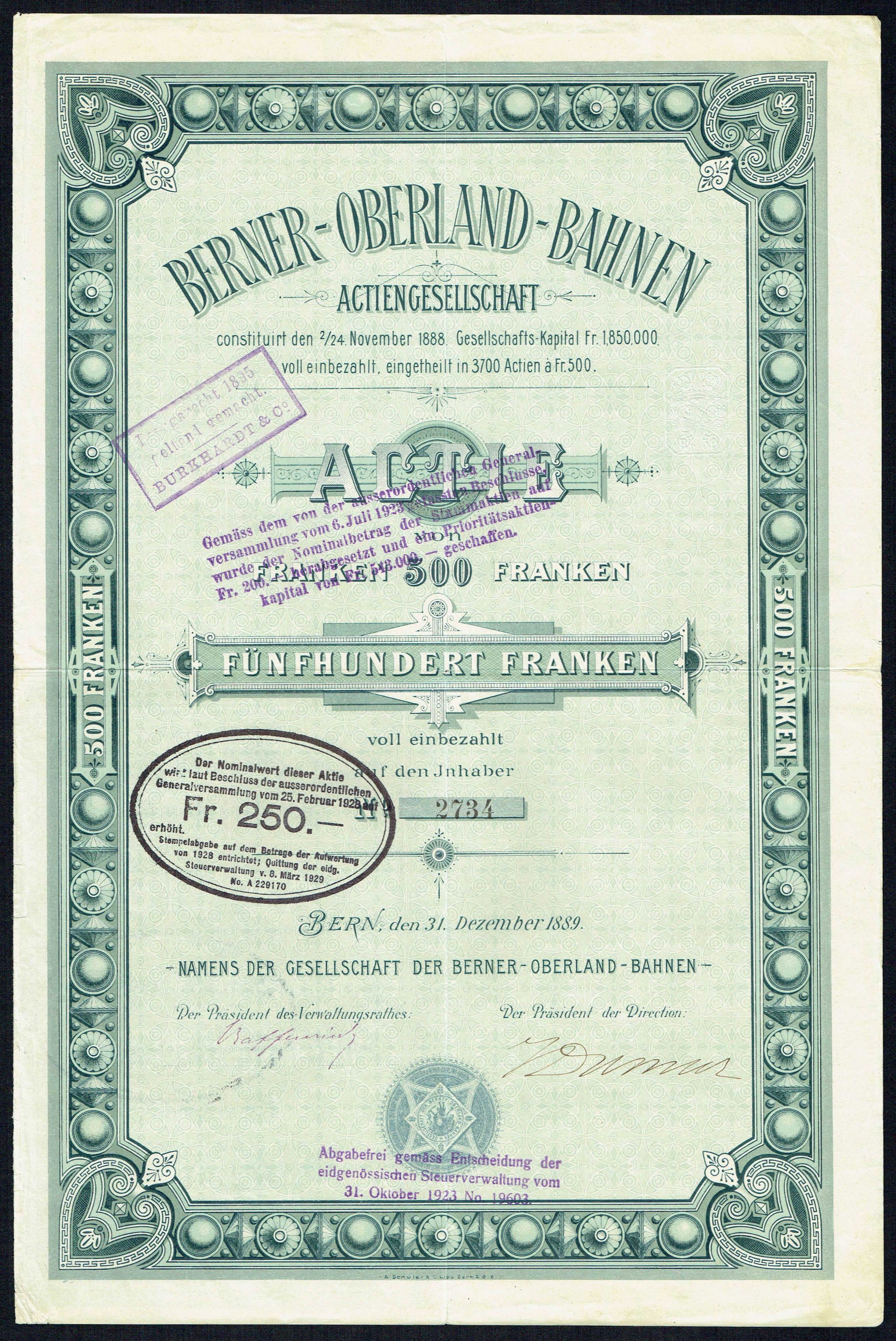 1873년 인터라켄에서 츠바이뤼치넨까지, 이후 라우터브루넨과 그린델발트로 연장하는 옵션을 포함한 베르너 오버란트 철도에 대한 최초 제안이 나왔다.[1] 4년 후, 노선 건설 및 운영에 대한 80년 간의 면허를 취득했고, 1888년 11월 2일 베르너 오버란트 철도 주식회사(Berner Oberland-Bahnen AG)가 설립되어 이듬해 건설이 시작되었다.