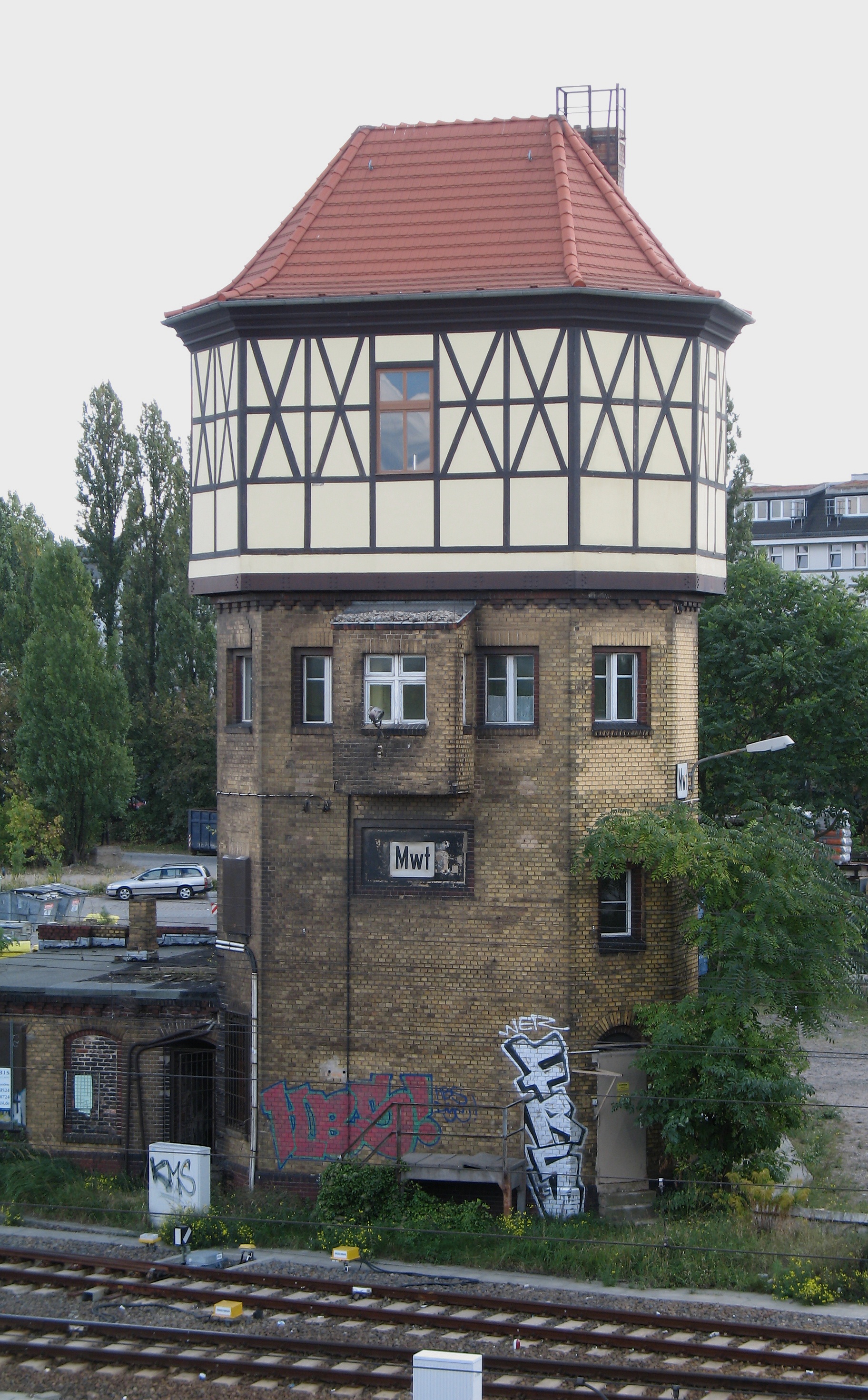 신호소 ''Mwt''(모아비 서쪽 타워)가 있는 이전의 급수탑