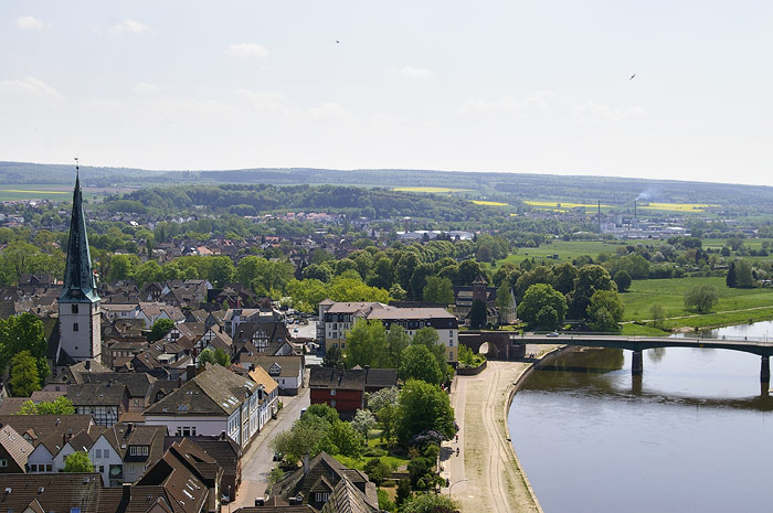 한뮌덴에는 내륙 수로 마일리지 0 지점이 있다. 이 지점의 수면은 해발 116.5m이다. 오버베저(베저강 상류)는 오베레스 베저탈("베저강 상류 계곡")을 포르타 베스트팔리카까지 베저베르클란트를 통과하여 흐른다. 오베레스 베저탈의 경사면은 대체로 숲으로 덮여 있다. 많은 마을은 채석업을 하거나 과거에 했던 곳으로, 수많은 역사적 건조물이 그 석재로 건설되었다. 많은 마을의 경관은 목조 건축으로 인상 지워지지만, 그 건축 양식은 강을 따라 내려갈수록 헤센 양식에서 니더작센-베스트팔렌 양식으로 서서히 변화해 간다.
