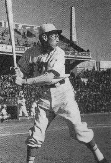 효고현 니시노미야시 출신이다. 게이오기주쿠 대학 시절 도쿄 지역 6개 대학 야구팀으로 구성된 도쿄 6대학 야구 연맹 춘계 리그에 출전하여 당시 사상 최고 타율인 5할을 기록하며 타격왕에 오르기도 했다.1947년 게이오기주쿠 대학 졸업 후 오사카 타이거스에 입단하여 2년간 활동했다. 1950년에 기존의 단일 리그에서 센트럴 리그와 퍼시픽 리그라는 양대 리그가 출범하자 퍼시픽 리그 팀인 마이니치 오리온스에 이적했다. 1950년 시즌에는 타율 3할 3푼 5리, 43개의 홈런, 105타점을 기록하여 홈런왕과 타점왕을 석권했고, 동시에 리그 MVP를 차지하였다. 같은 해 양대 리그 출범과 함께 도입된 일본 시리즈에서 센트럴 리그 우승 팀인 쇼치쿠 로빈스와의 맞대결에서 팀이 우승하는 데 기여했으며, 일본 시리즈 초대 MVP에 선정되었다.