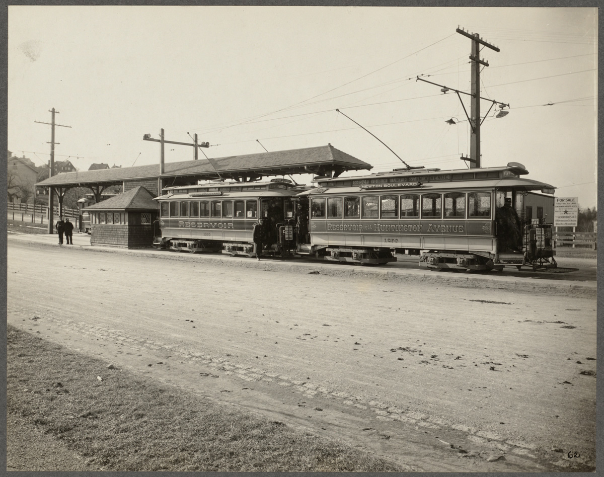 1896년 8월 15일, 보스턴 고가 철도(BERy)는 신설된 커먼웰스 애비뉴에 뉴턴 시 경계에서 동쪽으로 체스트넛 힐 애비뉴까지 선로를 추가했으며, 이곳에서 기존의 비컨 스트리트 라인과 클리블랜드 서클에서 연결되었다.[2] BERy는 웨스트 엔드 스트리트 철도로부터 물려받은 워터타운 라인에 대한 권리를 제외하고는 뉴턴에서 운행 권한이 없었다. 대신 커먼웰스 애비뉴 스트리트 철도가 1895년에 커먼웰스 애비뉴의 넓은 중앙 분리대를 따라 서쪽으로 오번데일까지 건설되었다.[3] 이 노선은 곧 미들섹스 앤 보스턴 스트리트 철도(M&B)에 인수되어 운영되었다. 두 노선은 시 경계에 있는 '''레이크 스트리트''' 역에서 만났다.[2]
