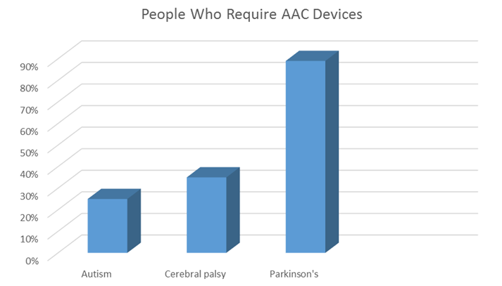 AAC 사용자는 전 세계적으로 다양한 질환 및 장애를 가지고 있으며, 그 수는 나라마다, 조사 연령과 장애별로 다르지만, 일반적으로 인구의 0.1~1.5% 정도가 심각한 언어 장애로 인해 AAC를 사용하면 도움을 받을 수 있는 것으로 알려져 있다.[224][225] 어린이 및 청소년의 약 0.05%는 고기술 AAC를 필요로 한다.[226]