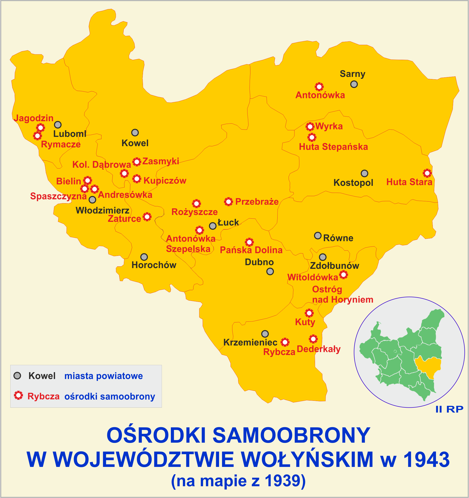 독일의 침공 당시 볼히니아의 유대인 인구는 약 46만 명이었다. 약 40만~45만 명의 유대인과 10만 명의 폴란드인 (남녀노소)이 우크라이나 반군 (UPA)과 우크라이나 협력자들에 의해 볼히니아에서 학살당했다. 유대인들은 총살당했고 수천 명이 큰 구덩이에 매장되었다. 주요 학살은 1942년 8월과 10월 사이에 일어났다. 홀로코스트에서 살아남은 사람은 약 1.5%로 추산된다. 1945년 봄까지 폴란드 보복 공격으로 인한 우크라이나 희생자 수는 볼히니아에서 약 2,000~3,000명으로 추정된다.[8]