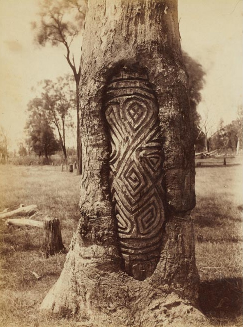 전통적으로 나무에서 나무껍질 한 장을 제거하고 맨 표면을 조각하여 매장 무덤을 향하게 했다. 경우에 따라 고위층 인물의 경우 무덤 주변에 최대 다섯 그루의 나무가 조각되었다. 이러한 조각들은 살아생전 그 사람이 존경했던 문화 영웅과 관련이 있으며, 그의 영혼이 하늘 세계로 돌아가는 통로를 제공한다고 여겨졌다는 주장이 있다.[19] 알프레드 윌리엄 하윗에 따르면 이러한 조각된 나무들은 문화 영웅이 천체로 올라가고 내려오는 통로 역할을 할 뿐만 아니라 사망자가 하늘 세계로 돌아가는 수단으로도 사용되었다.[20]