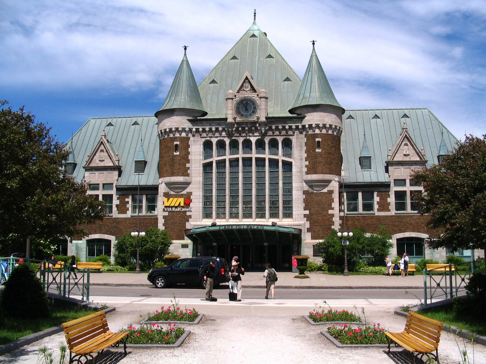 구 퀘벡의 주요 철도역은 팔레 역(Gare du Palais)이다. 1915년 캐나다 태평양 철도가 개통했으며, 샤토 프롱트낙과 유사한 샤토풍 양식으로 지어졌다. 현재 비아 레일은 드럼몬드빌을 경유하여 몬트리올까지 가는 정기 노선을 운행하고 있다. 또한, 민간 버스 회사인 오를레앙 익스프레스도 이 역에서 운행한다.
