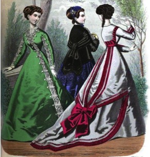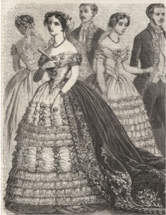 • 1860년대: 크리놀린의 형태가 변화하여 앞부분은 평평해지고 뒷부분이 길어져 트레인을 형성하는 등 풍성함이 뒤쪽으로 이동했다.