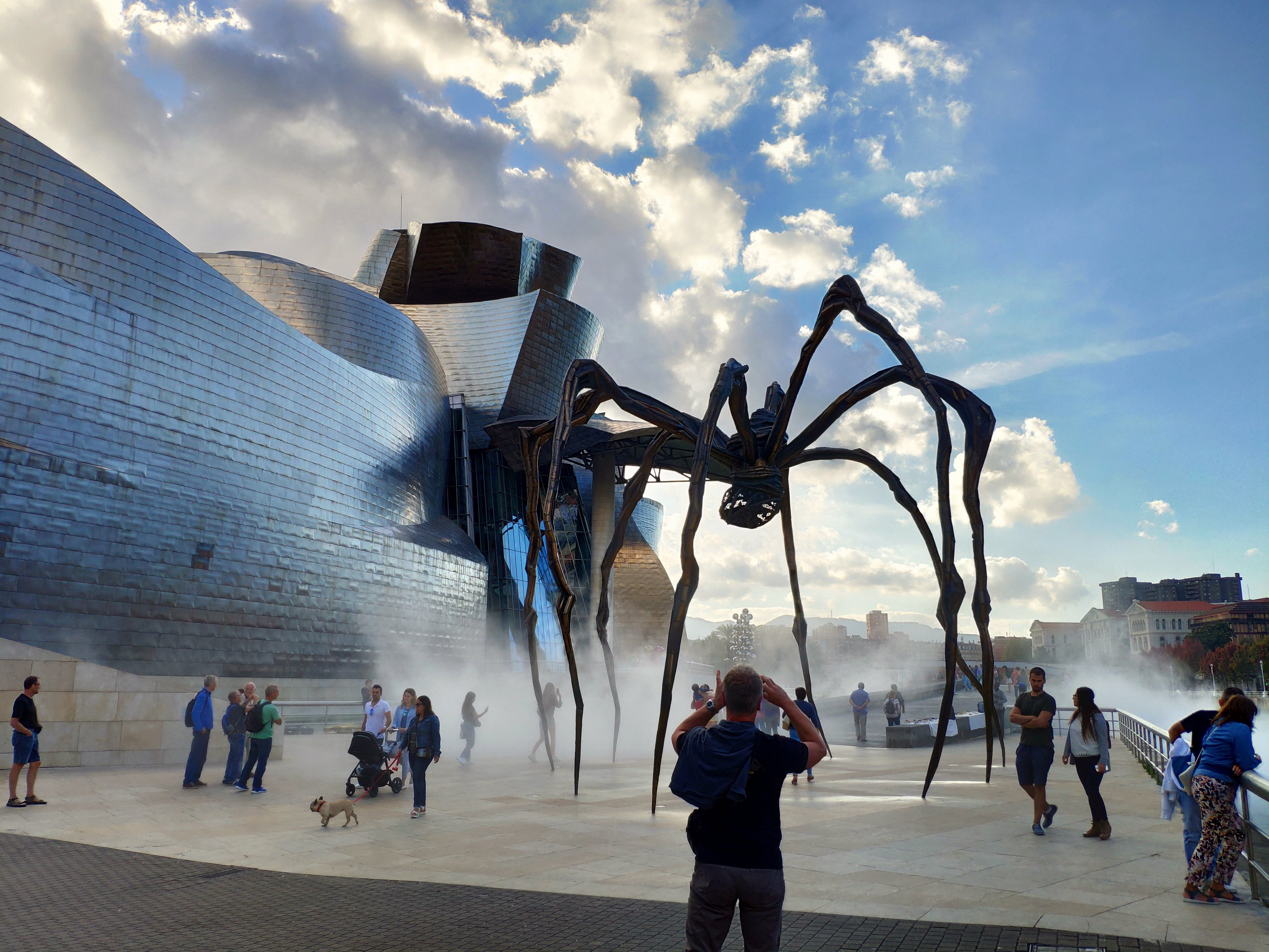 빌바오는 스페인에서 손꼽히는 공업 도시였으나, 1990년대 이후 산업이 쇠퇴했다. 이 미술관은 빌바오의 경제 활성화의 일환으로 개관했으며,[64] 개관 직후 전 세계에서 관광객을 불러 모으는 인기 관광지가 되었다.[65]