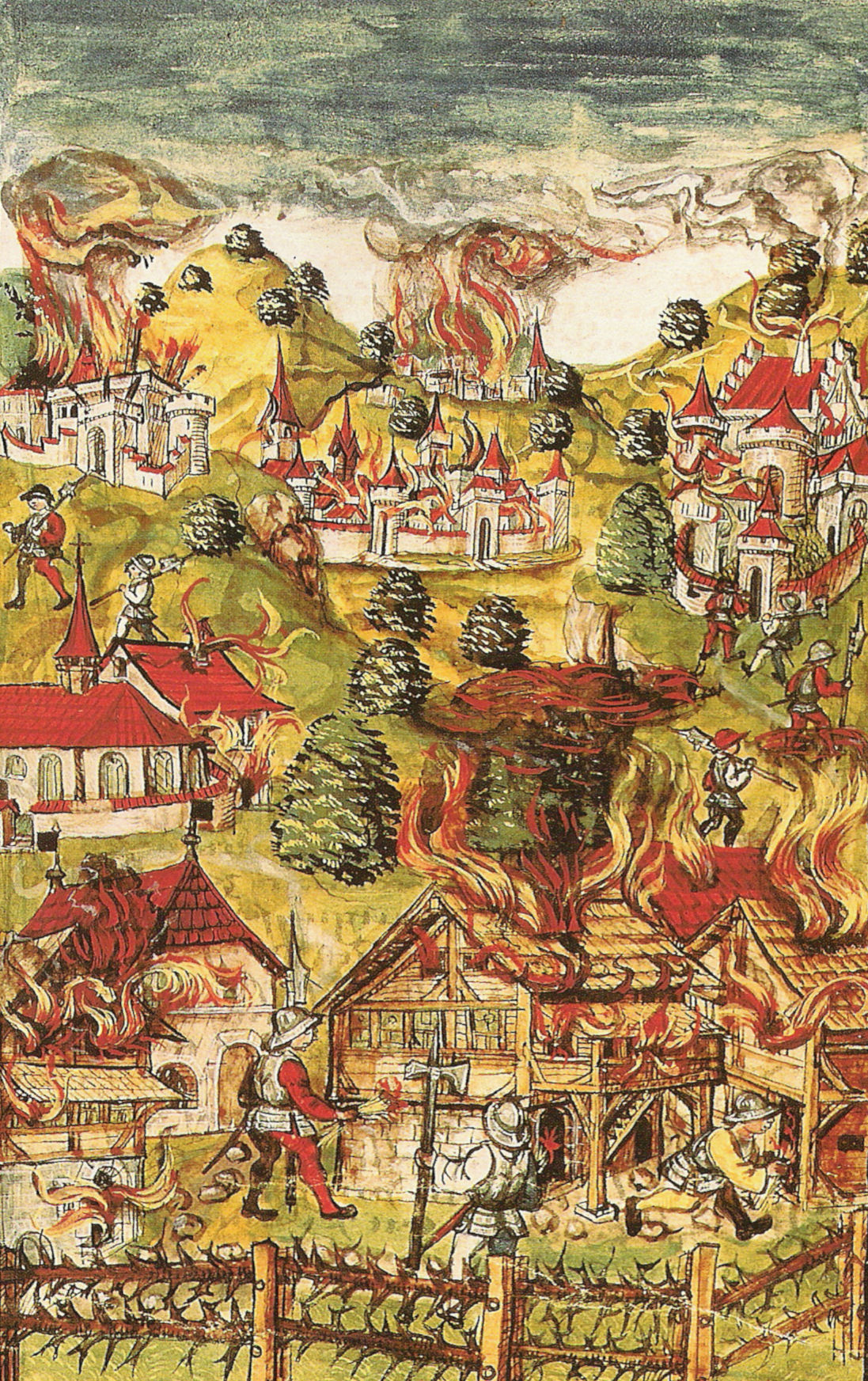 1475년 4월, 구스위스 연방은 베른을 중심으로 보에 대항하여 민병대를 일으켰다. 보는 알프스 접근과 지중해 및 이탈리아로의 통행을 제공하는 전략적 요충지였다. 베른은 보를 이용하여 샤를 1세의 군대에 합류하는 이탈리아 용병의 유입을 막고자 했다. 무장 단체들은 땅을 황폐하게 만들고, 살해하고, 강간하고, 약탈하고, 몸값을 요구했다. 사보이의 자크가 자신의 영토를 방어하기 위해 돌아올 수 없었기 때문에 "스위스 무리"는 곧 그랑송, 오르브, 몽타니와 에샬랑을 점령했다. 무르텐은 침략자들의 편을 들었다. 니옹, 클레와 주뉴에서 학살이 일어났다. 라 사라와 코소네가 점령되었다. 주교 도시인 제네바로잔은 막대한 몸값을 지불했다. 동쪽에서는 베른의 군대가 아글과 샤블레의 일부를 점령했다. 결국 16개 마을과 43개 성의 생존자들은 새로운 스위스 지배자들에게 충성을 맹세했다.