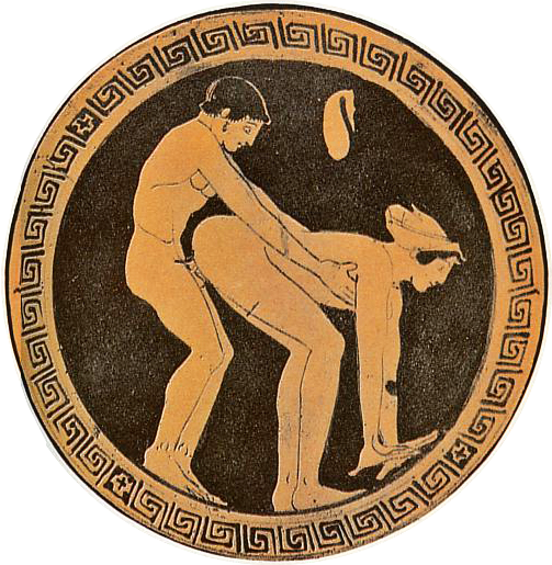 고대 그리스의 헤로도토스 등의 기록에 근거하여 고대 근동 지역 사람들이 성스러운 매춘을 했다는 주장이 제기되었지만, 증거 부족으로 의문시되고 있다.[31][32] 고대 그리스 매춘에 대한 가장 오래된 자료 중 하나는 아르카이크 시대 시인 아나크레온(Anacreon, 기원전 575년경 – 기원전 495년경)의 시로, "자발적인 매춘부"를 언급한다. 고전 시대 매춘 기록은 더 잘 문서화되어 있으며, 높은 사회적 지위를 가진 헤타이라이(hetairai)와 같은 자유 출신 자발적 매춘부와 강제 매춘 노예를 모두 포함한다.[33] 고대 그리스에는 남성 매춘부도 존재했다.[34]